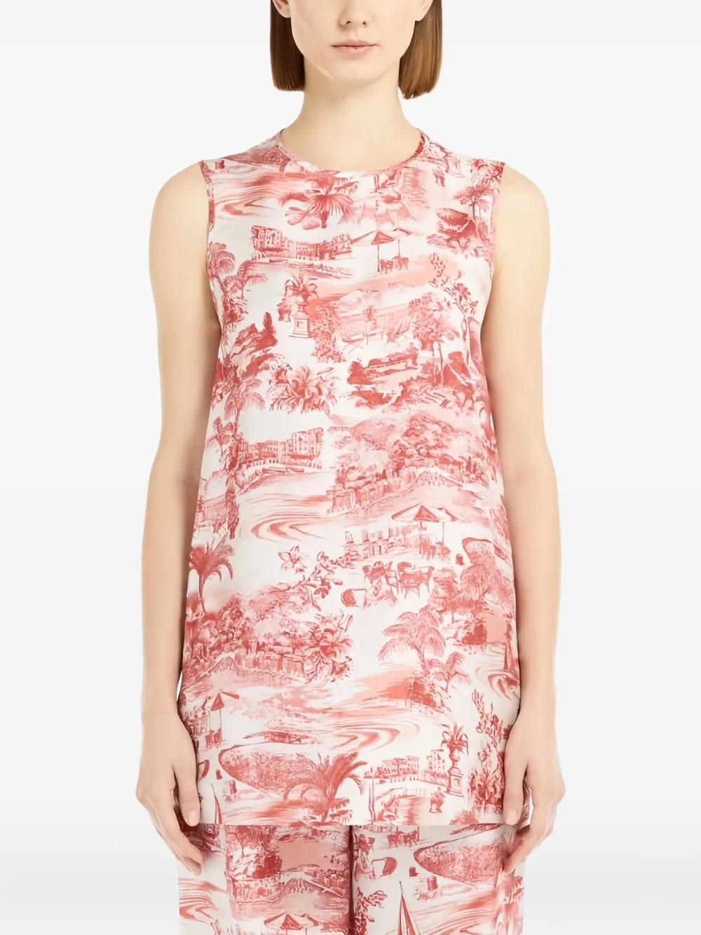 chalk white patterned floral print mock neck sleeveless dart detailing straight hem