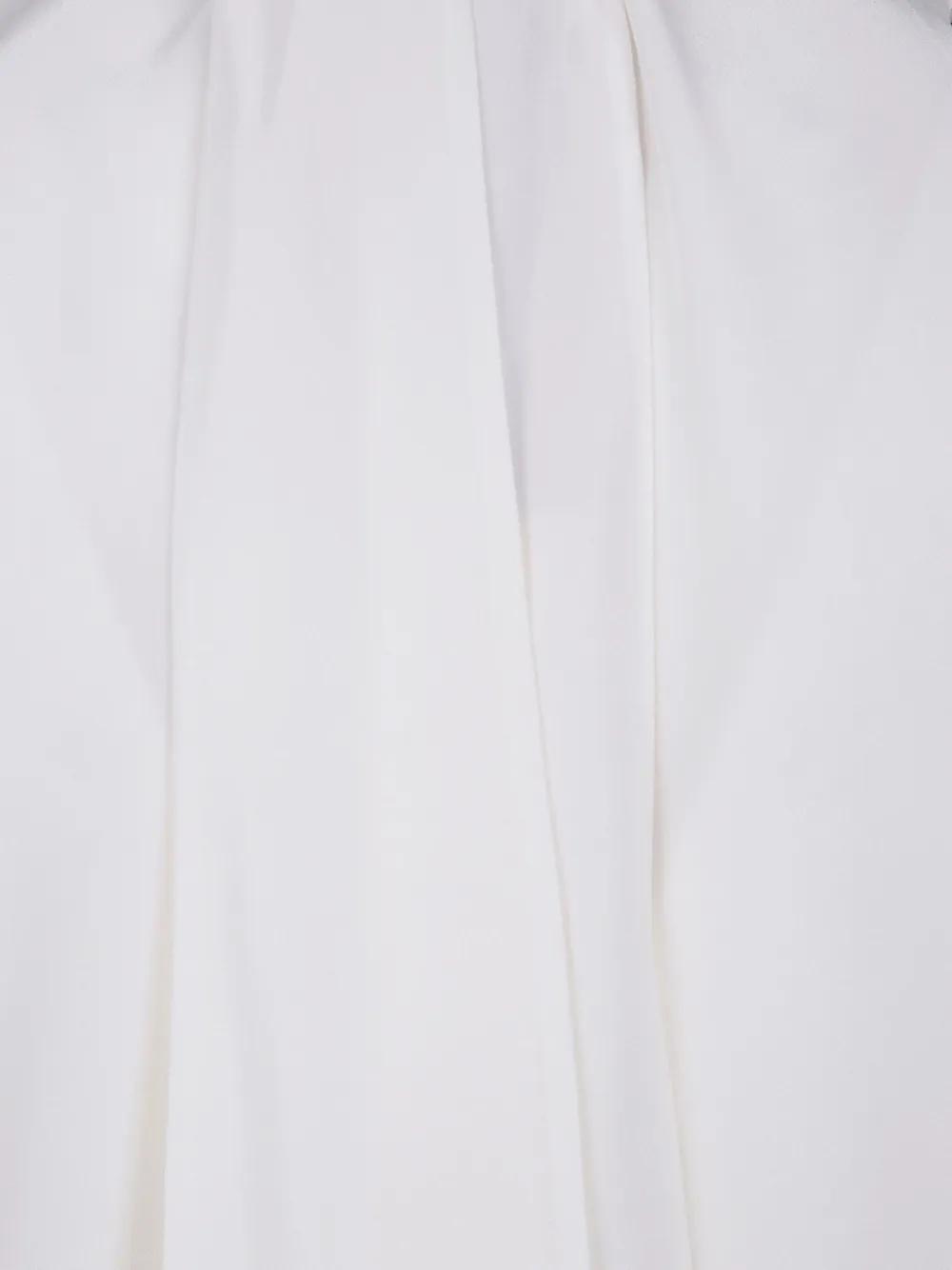 emerald green satin finish flared pleat detailing band collar long sleeves buttoned cuffs straight hem unlined short front button fastening