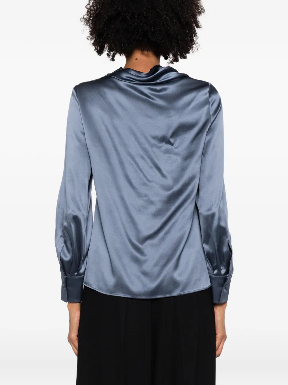 blue knot detail long sleeves cuffed sleeves asymmetric neck