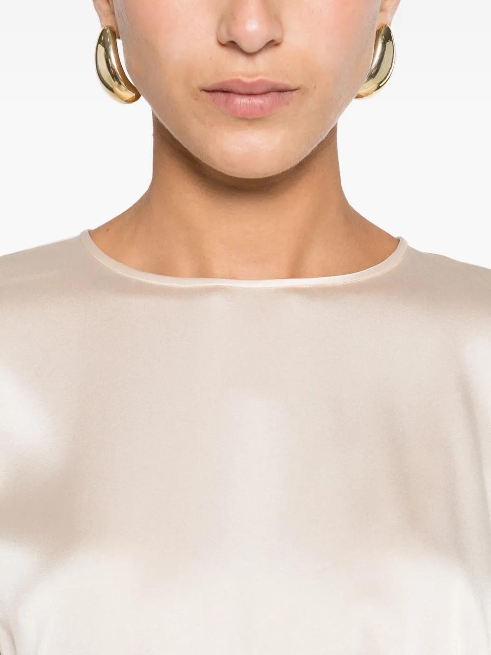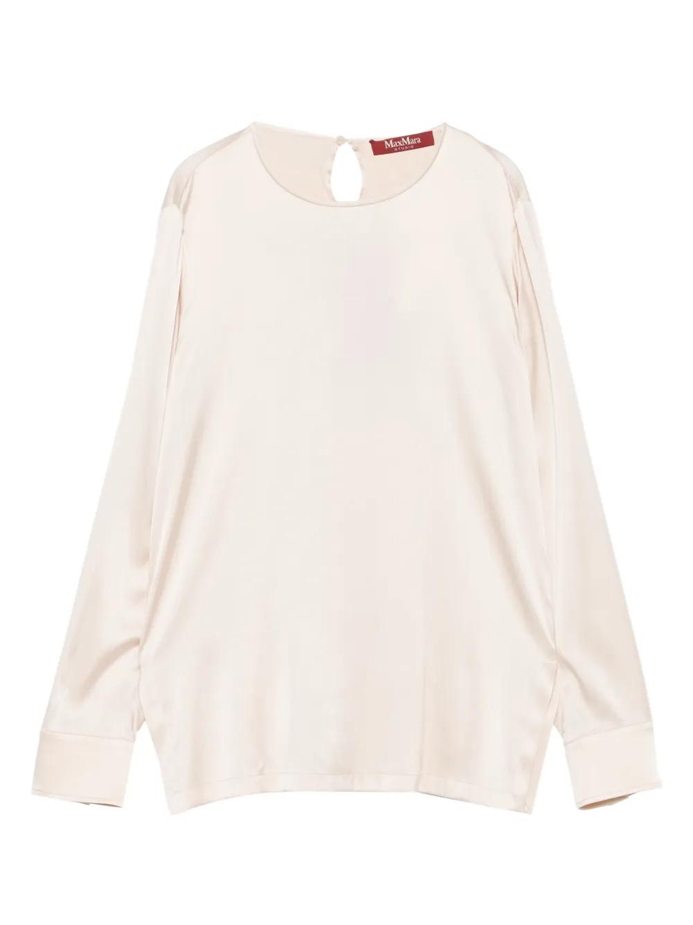 beige silk blend rear keyhole fastening long sleeves straight hem