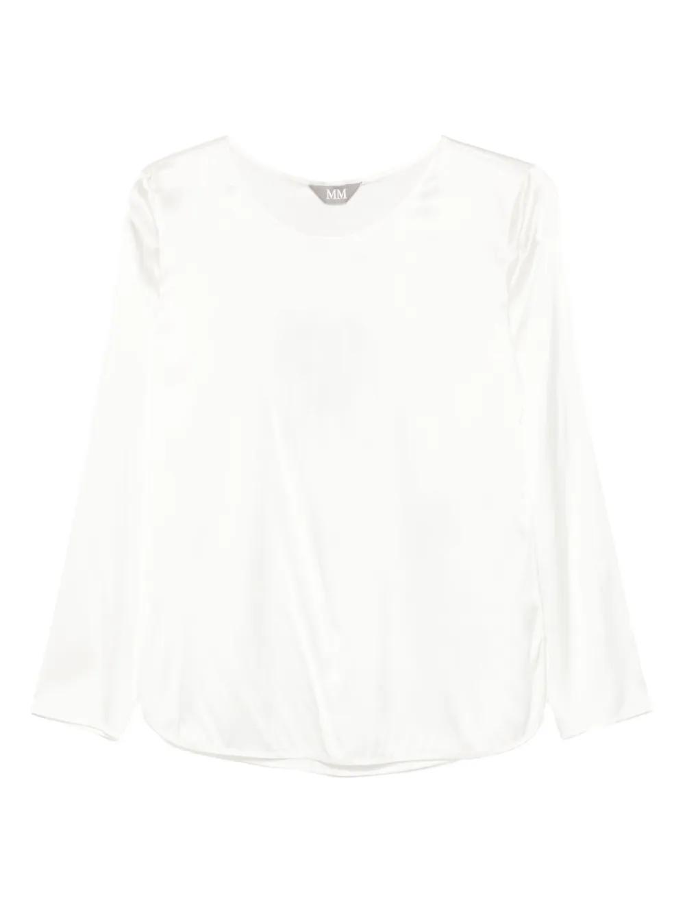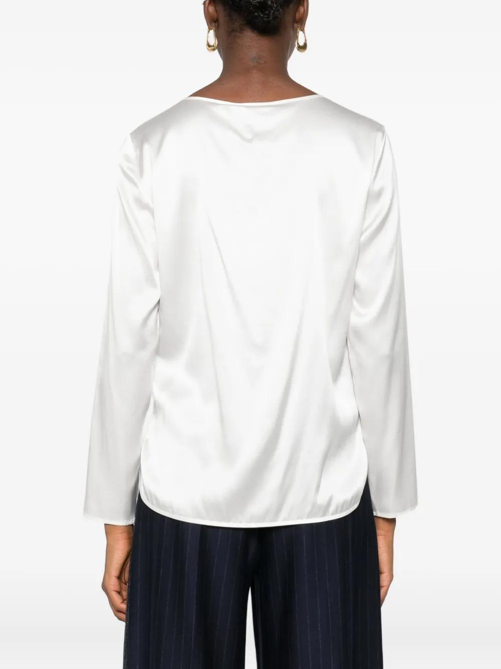 beige silk blend rear keyhole fastening long sleeves straight hem