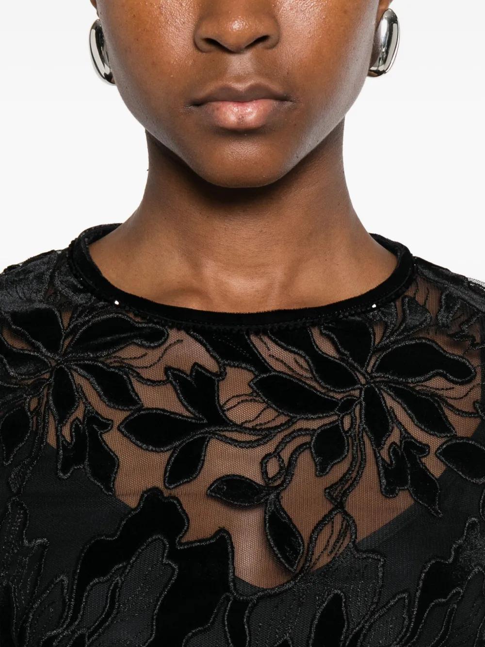 black floral pattern round neck long sleeves rear zip fastening