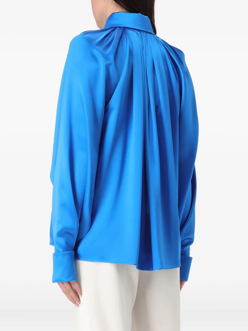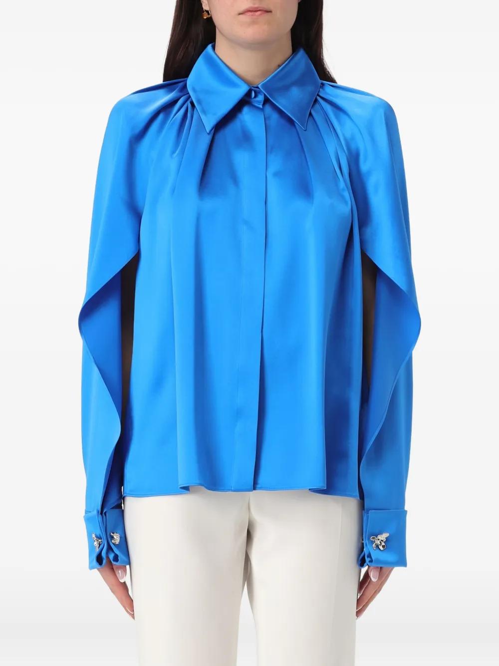 teal blue concealed front button fastening pleat detailing slit-sleeve overlay high-cuffs