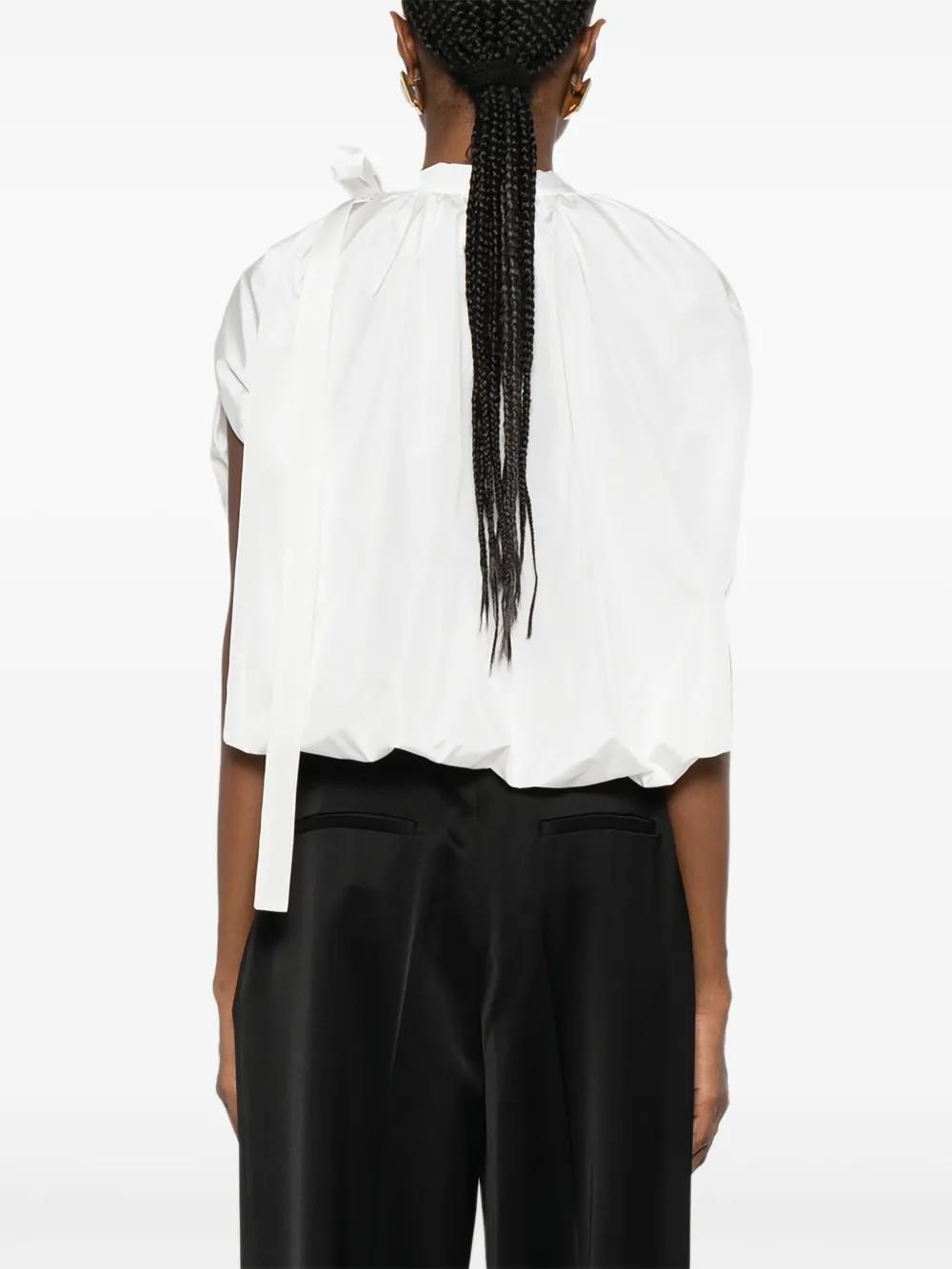 white tie detail at the shoulder sleeveless gathered detailing round neck