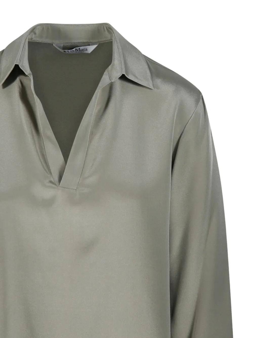 sage green V-neck long sleeves buttoned cuffs rear yoke seam silk