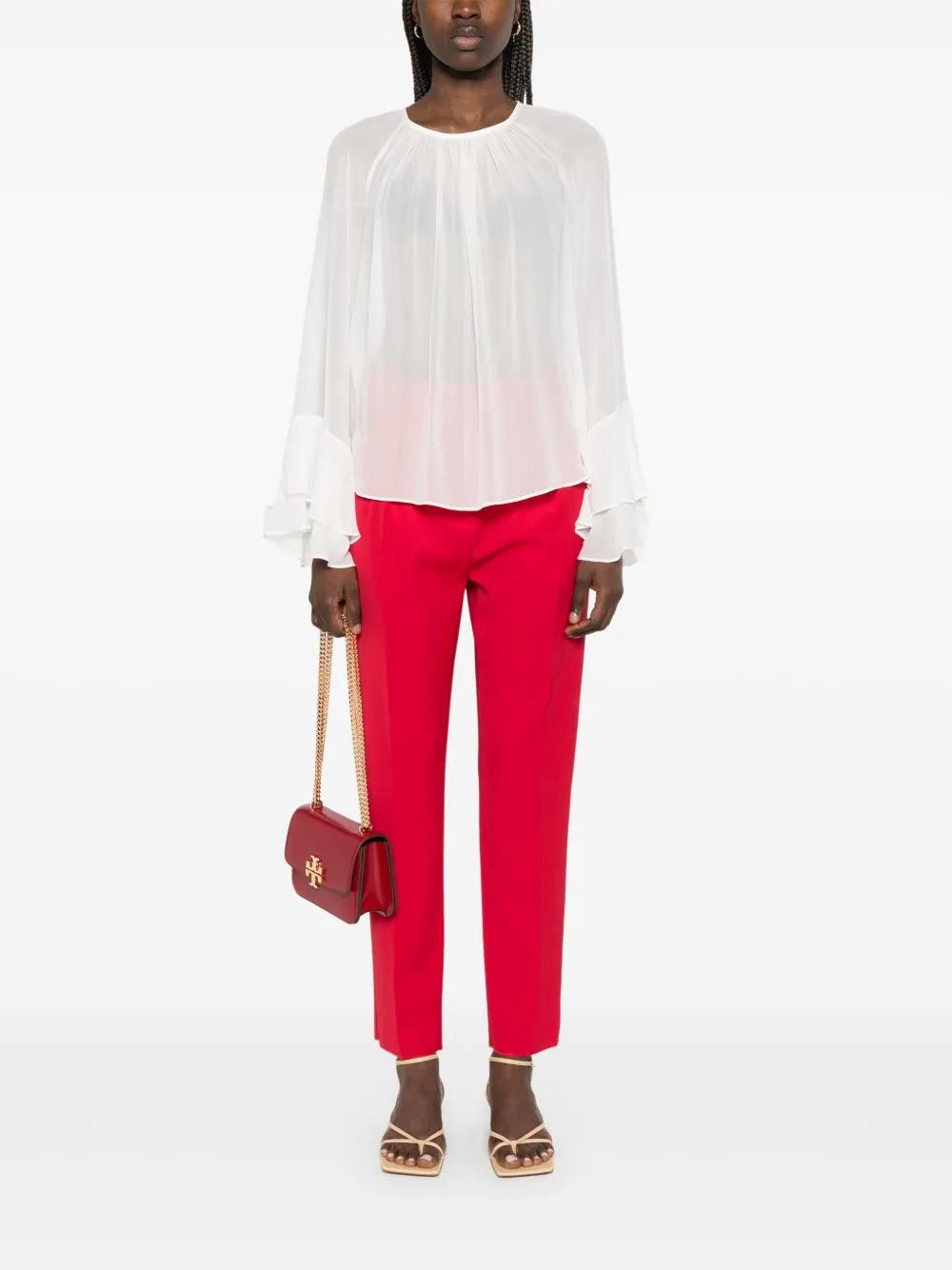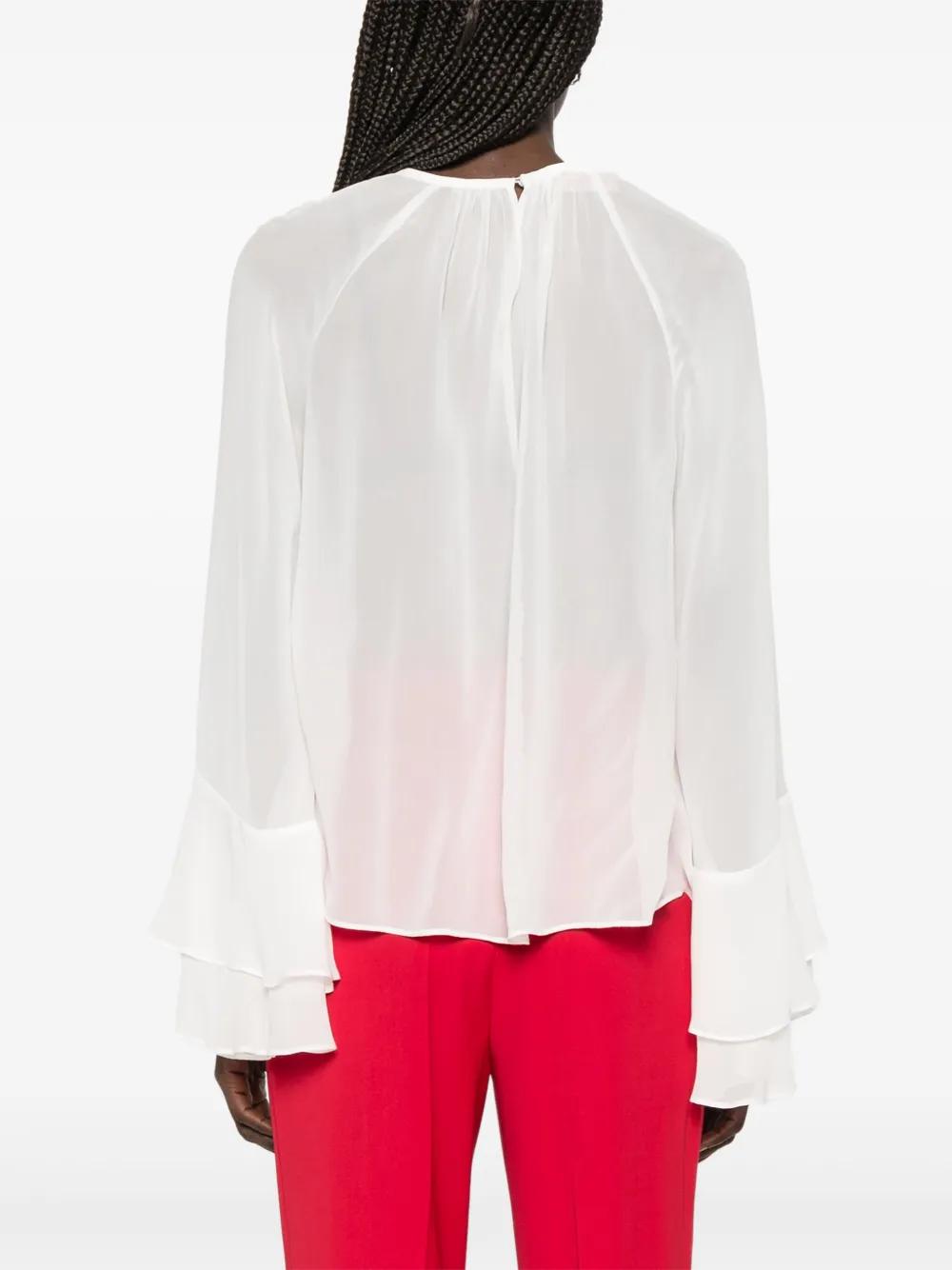 white single rear button fastening flared cuffs pleat detailing keyhole detail to the rear
