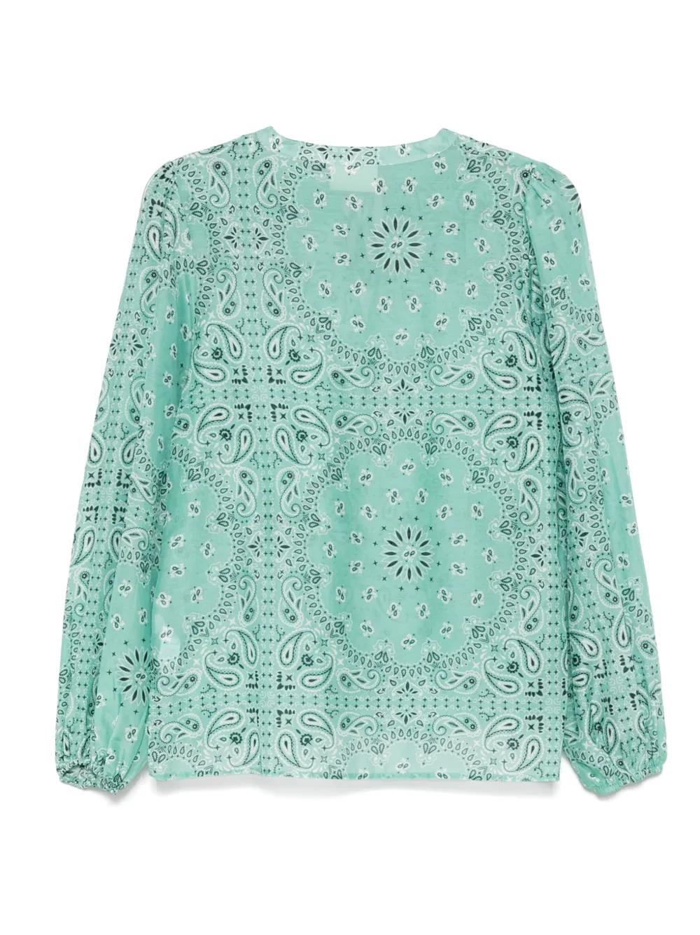 turquoise blue-green front button placket front tie fastening elasticated cuffs bandana print