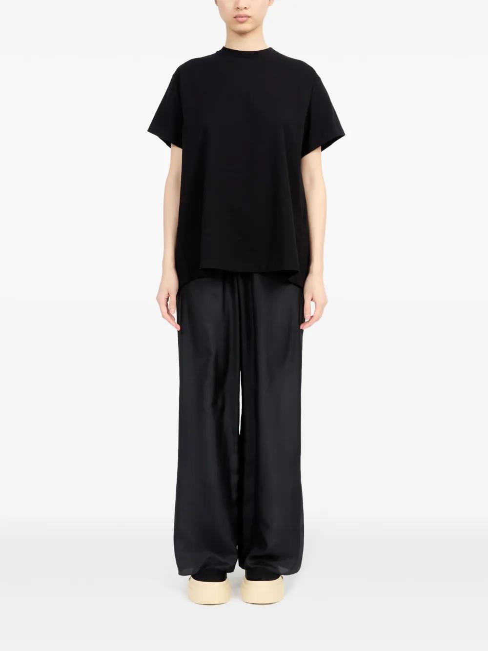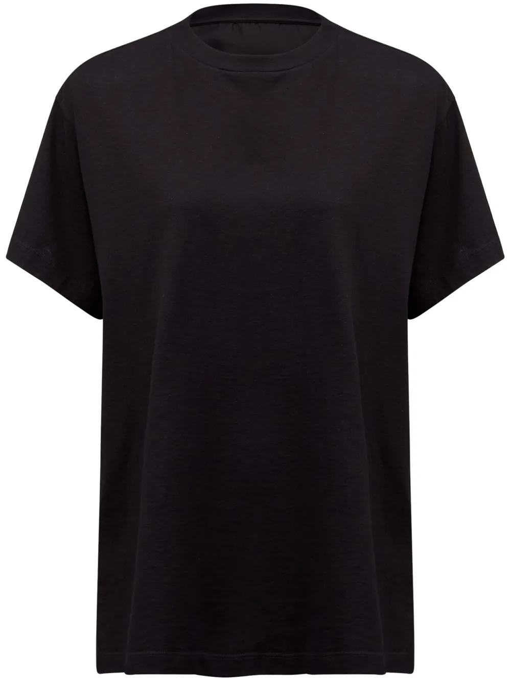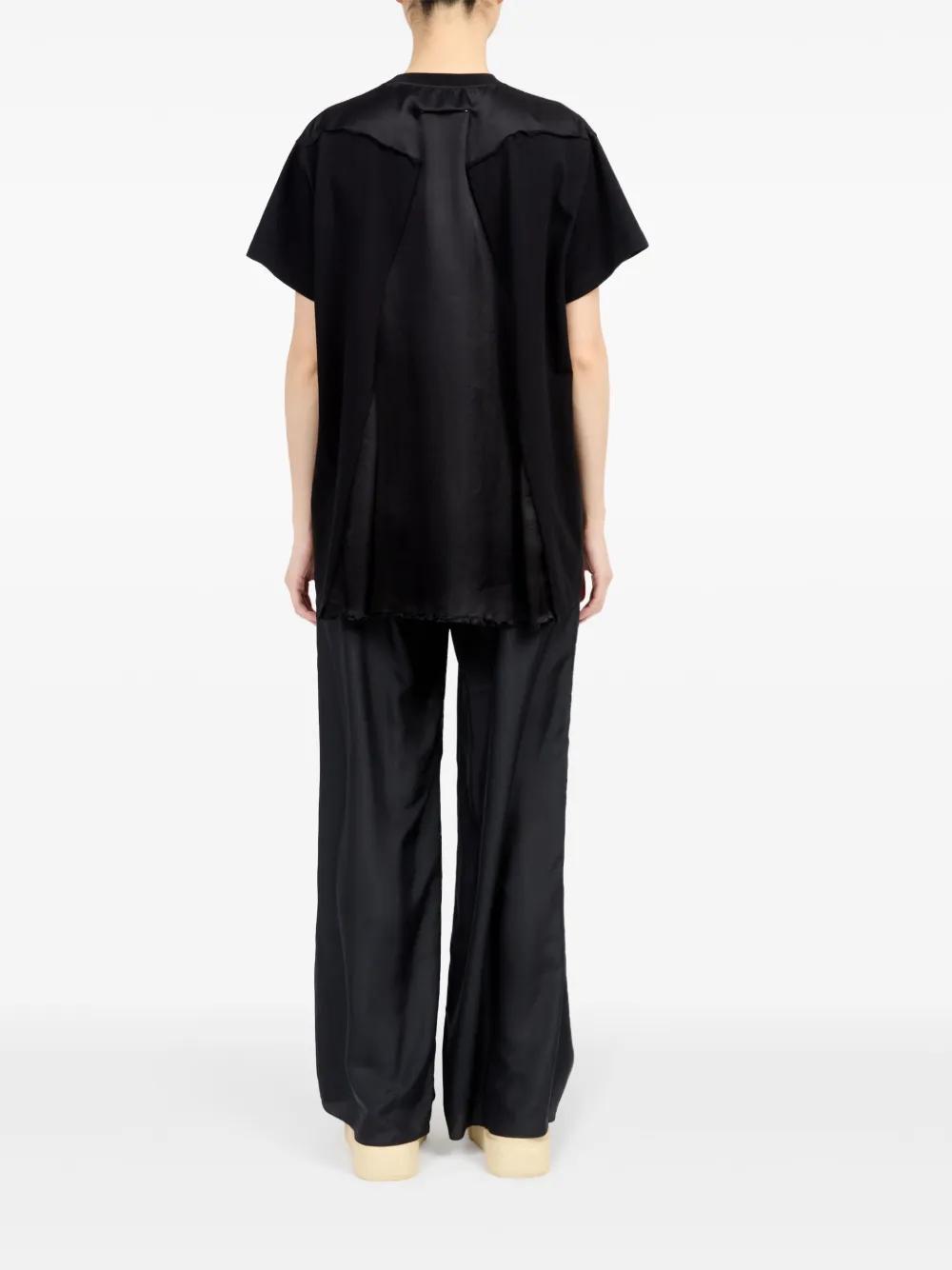 black cotton crew neck short sleeves panel detailing
