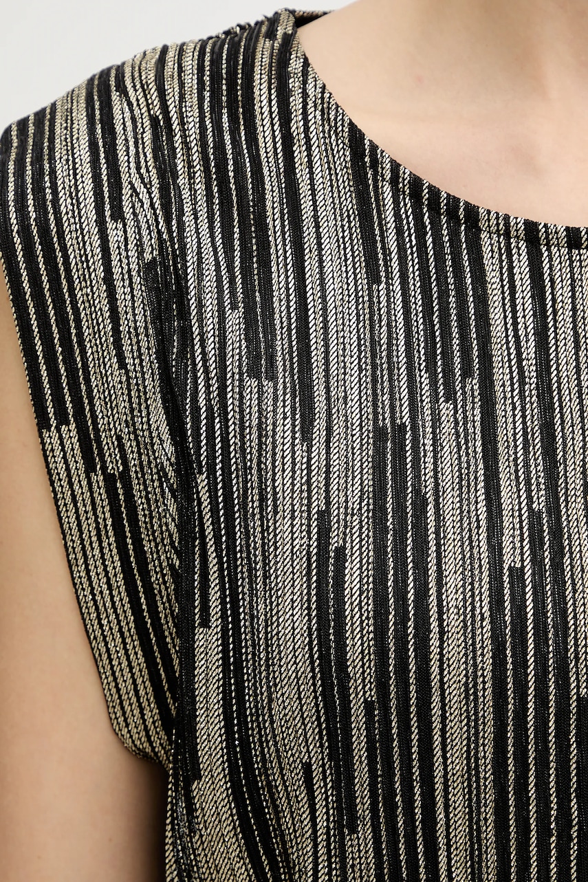 - Prosty, nie blokujący ruchów fason. - Klasyczny, okrągły dekolt. - Dodatkowa warstwa materiału w postaci podszewki. - Ozdobne wykończenie z metaliczną nicią. - Długość: 60 cm. - Szerokość pod pachami: 45 cm. - Wymiary podane dla rozmiaru: S.