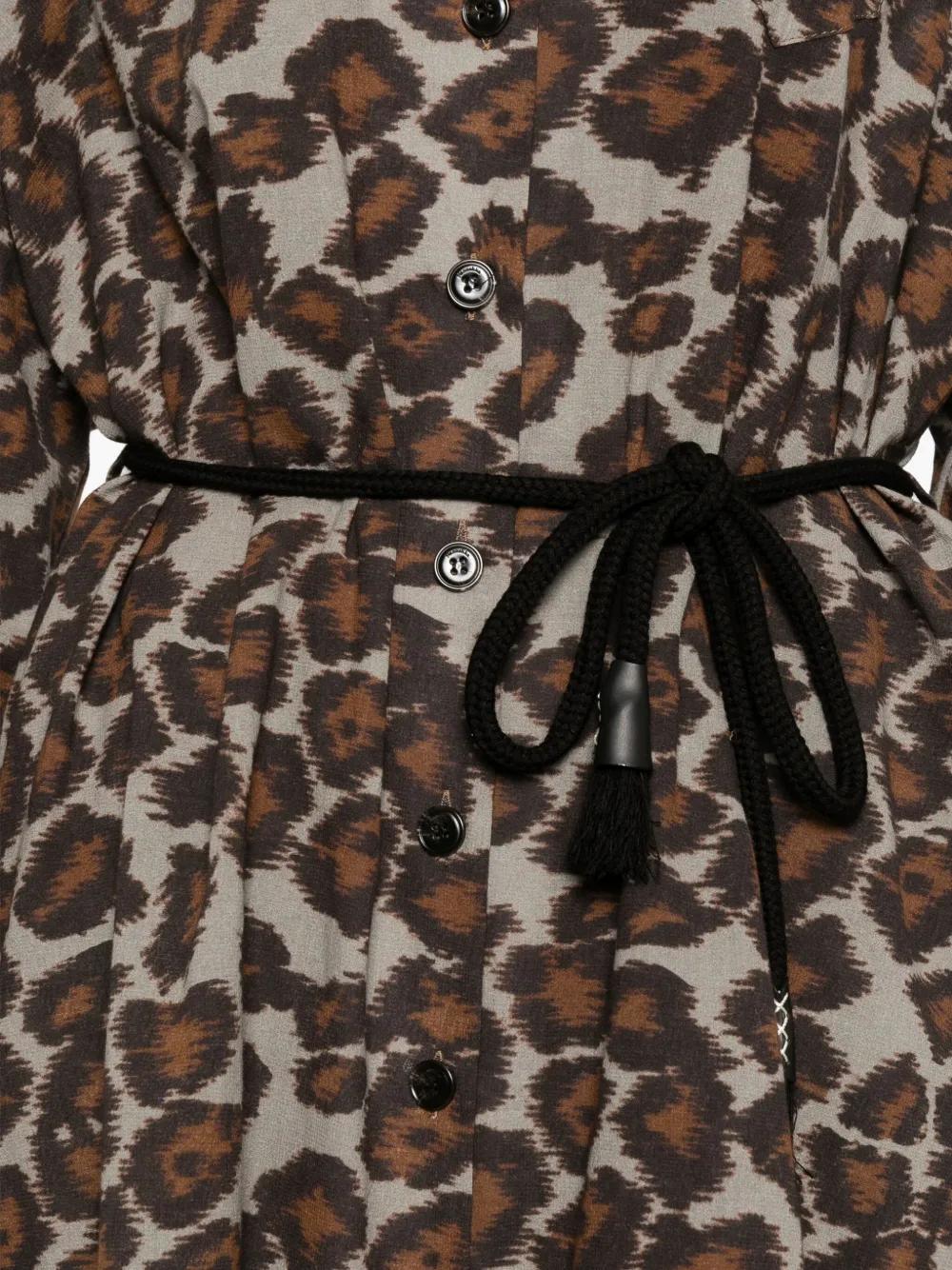 grey/brown animal print V-neck chest pocket front button fastening tassel detail