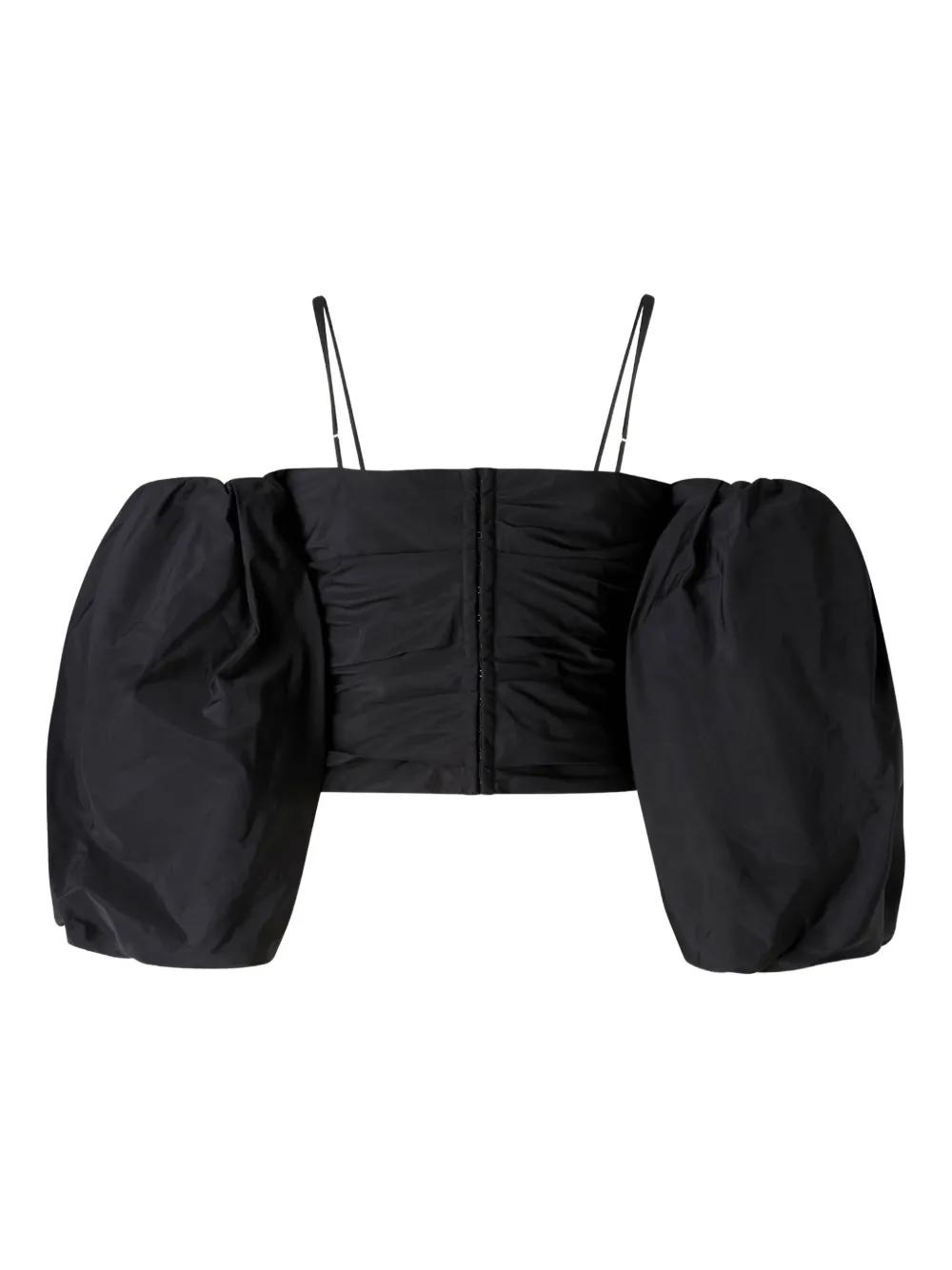 black draped detail off-shoulder neckline balloon sleeves straight hem