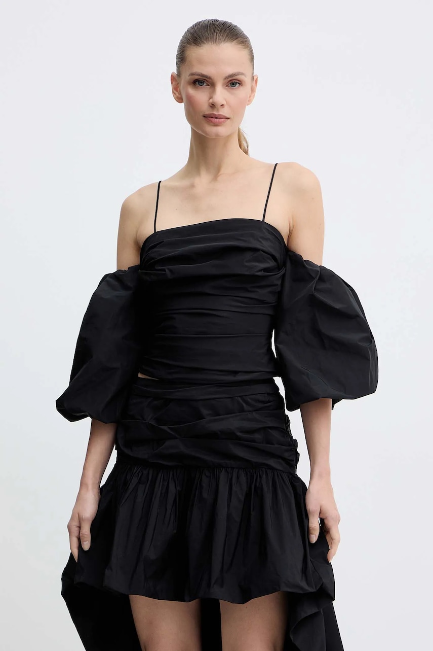 Uwaga: oryginalna rozmiarówka produktów tej marki jest rozmiarówką włoską. Informujemy, że rozmiary na metkach mogą różnić się od zamawianych ze względu na zastosowany przelicznik. - Dopasowany, podkreślający sylwetkę fason. - Model z bufkami. - Dekolt typu karo. - Materiał z ozdobnymi zakładkami. - Model na podszewce. - Z tyłu zapięcie na haftki. - Nieregulowane, nieodpinane ramiączka. - Długość: 50 cm. - Szerokość pod pachami: 38 cm. - Wymiary podane dla rozmiaru: 36.