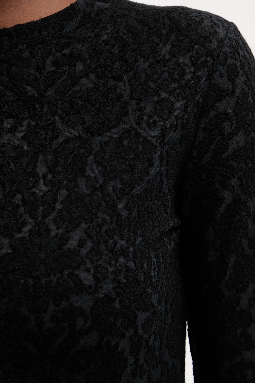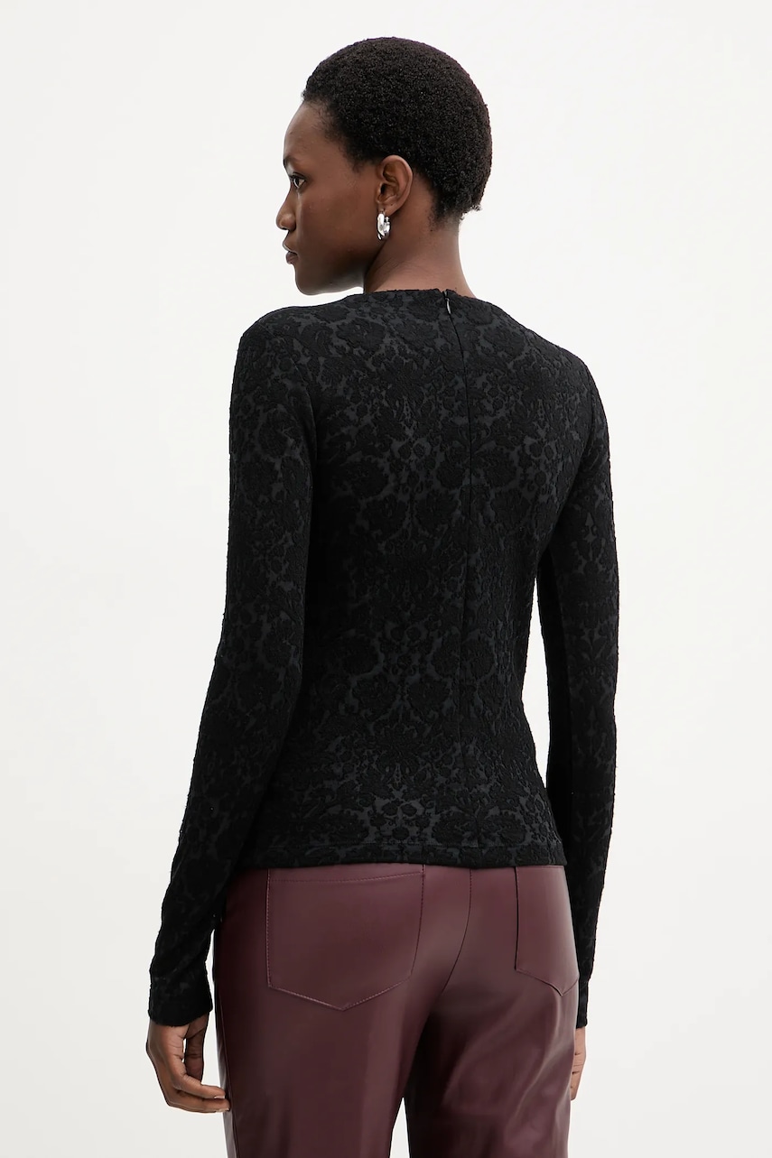 Uwaga: oryginalna rozmiarówka produktów tej marki jest rozmiarówką włoską. Informujemy, że rozmiary na metkach mogą różnić się od zamawianych ze względu na zastosowany przelicznik. - Dopasowany, podkreślający sylwetkę fason. - Klasyczny, okrągły dekolt. - Długie, proste rękawy. - Z tyłu zapięcie na kryty suwak i haftkę. - Model wykonany z koronkowego materiału. - Długość rękawa: 70 cm. - Długość: 62 cm. - Szerokość pod pachami: 42 cm. - Wymiary podane dla rozmiaru: S.