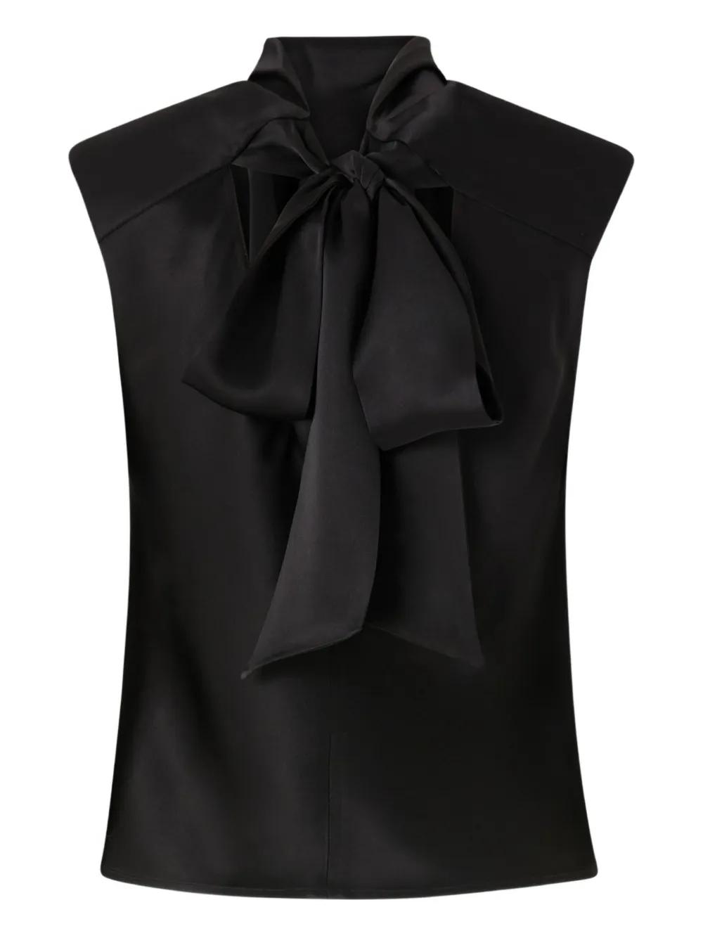 black draped detailing sleeveless high neck bow detail to the back back fastening