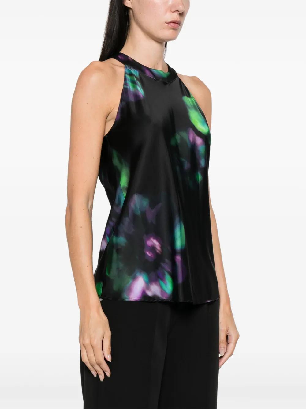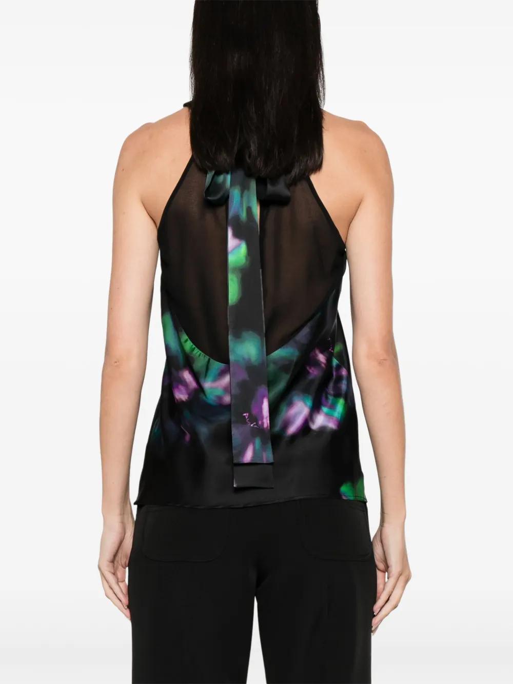black/multicolour satin finish rear tie fastening all-over floral print crew neck sleeveless open back straight hem