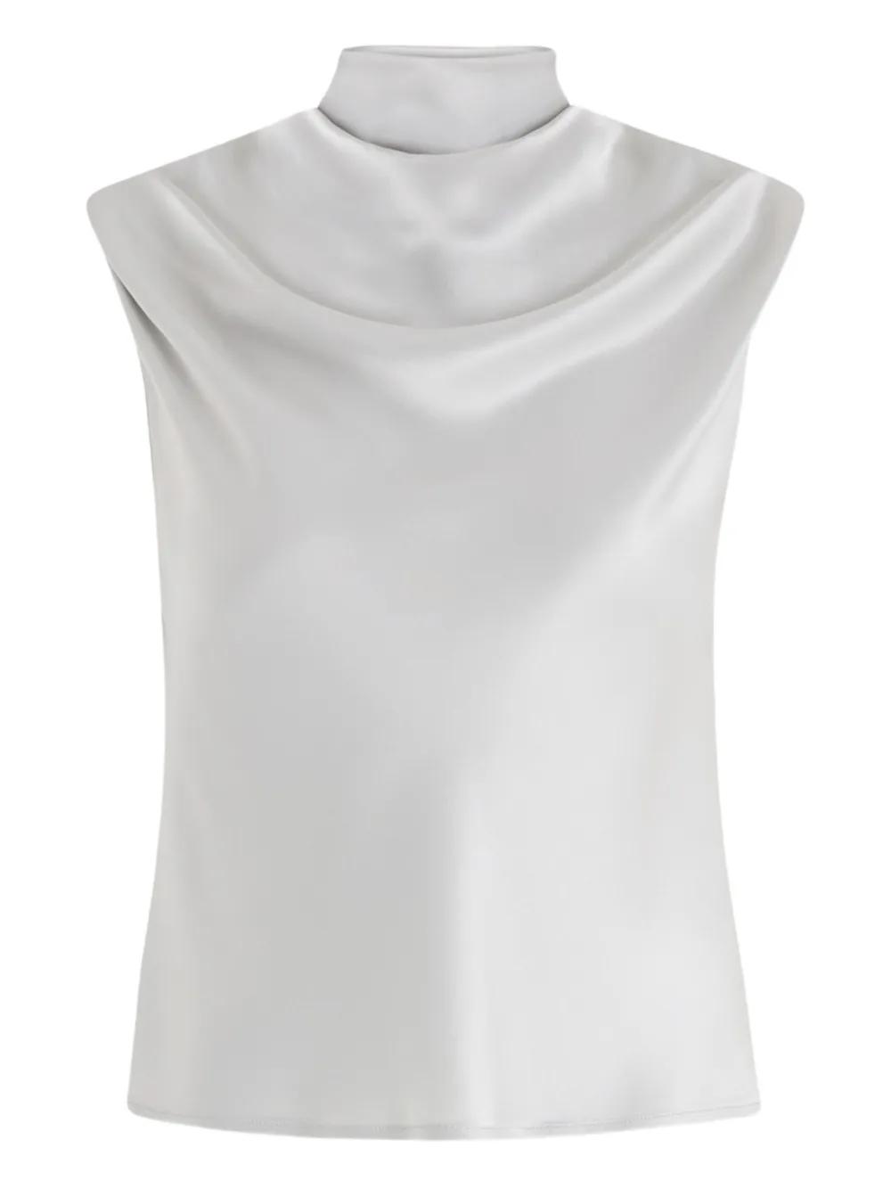 grey tie detail sleeveless high neck draped detail