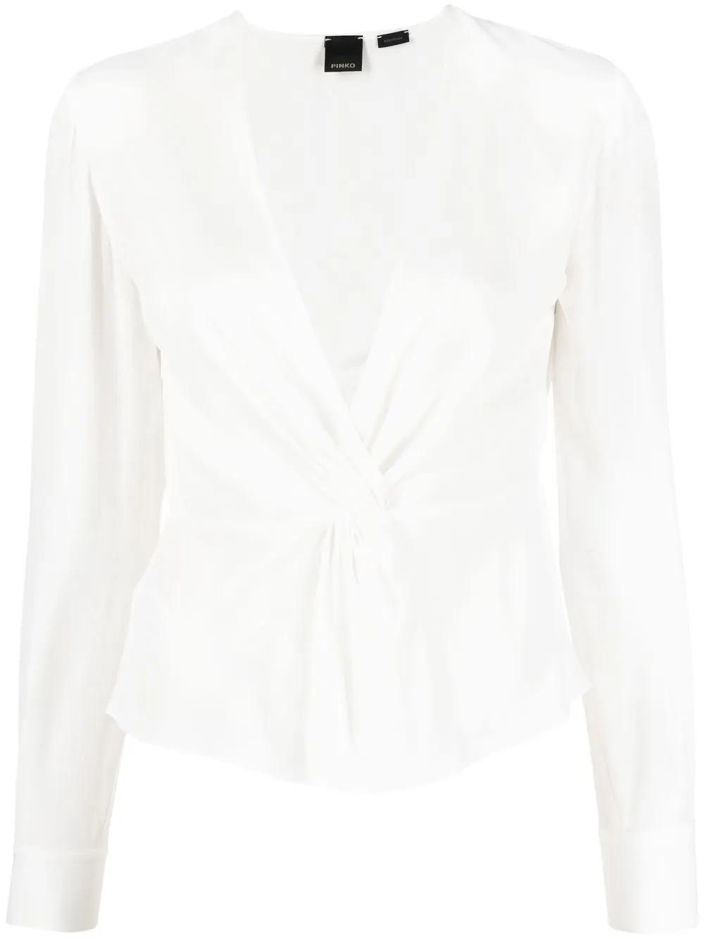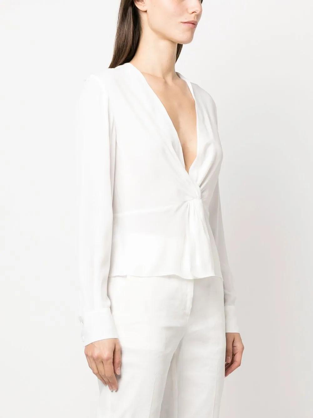 white twist detailing plunging V-neck peplum hem long sleeves buttoned cuffs straight hem