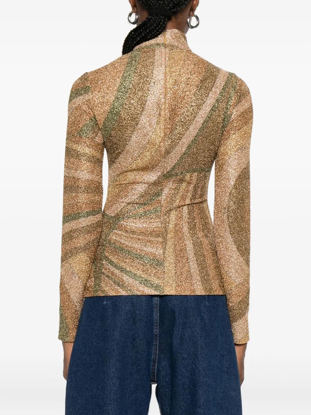 - Luźny krój zapewniający pełną swobodę ruchów. - Model ze stójką. - Krój rękawa z obniżoną linią ramion nie ogranicza ruchów. - Długie, bufiaste rękawy. - Z tyłu zapięcie na guziki. - Do modelu dołączony top. - Cienka, elastyczna dzianina. - Długość rękawa(mierzona od stójki): 80 cm. - Długość: 65 cm. - Szerokość pod pachami: 45 cm. - Wymiary podane dla rozmiaru: 36.
