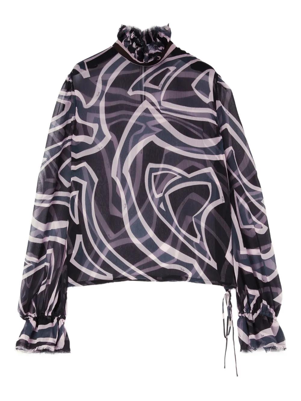 PUCCI labirinto print balloon-sleeves blouse - Black