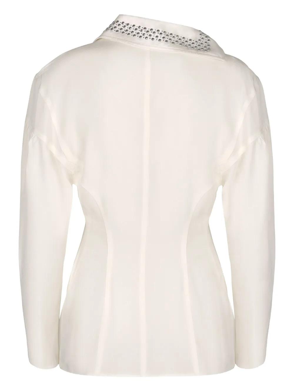 white flat decorative studs long sleeves side closure soft fabric lightweight fabric