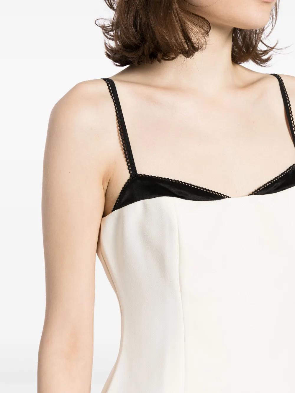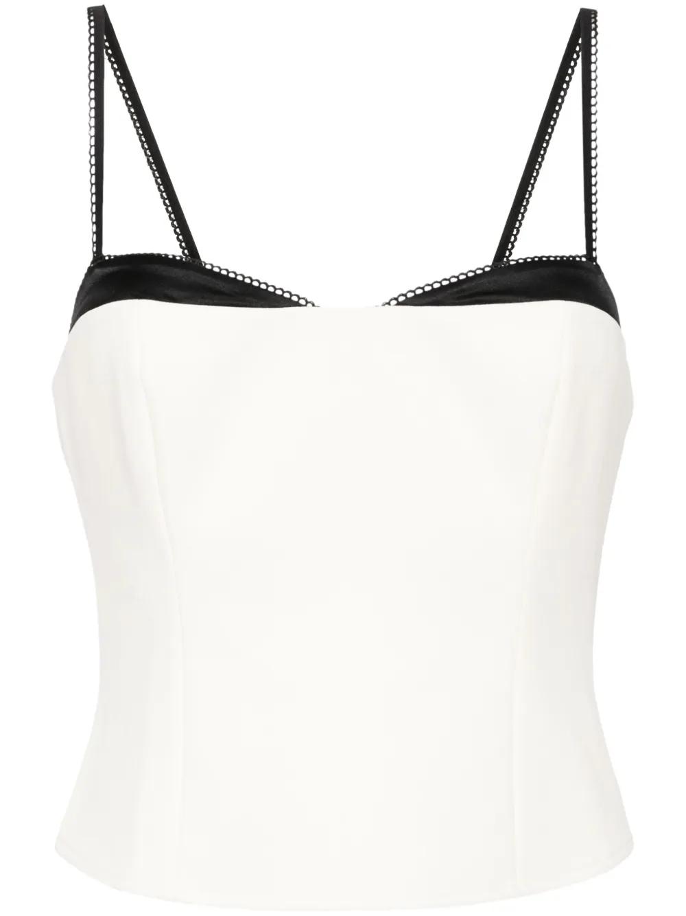 white/black stretch-design sweetheart neck smocked panel contrasting border full lining