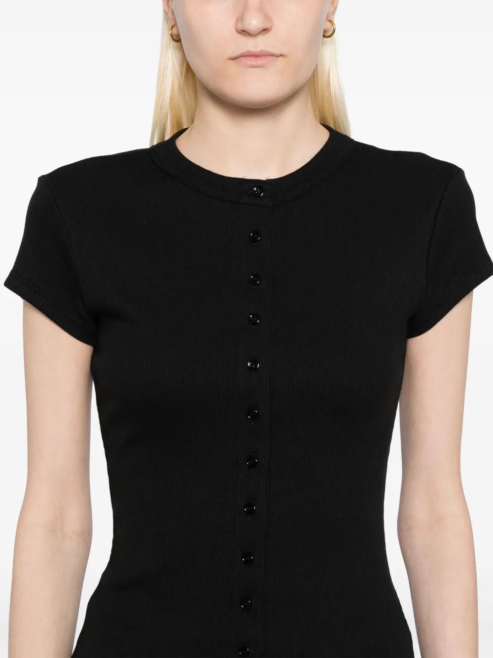 black off-shoulder short sleeves ruched detail logo detail straight hem
