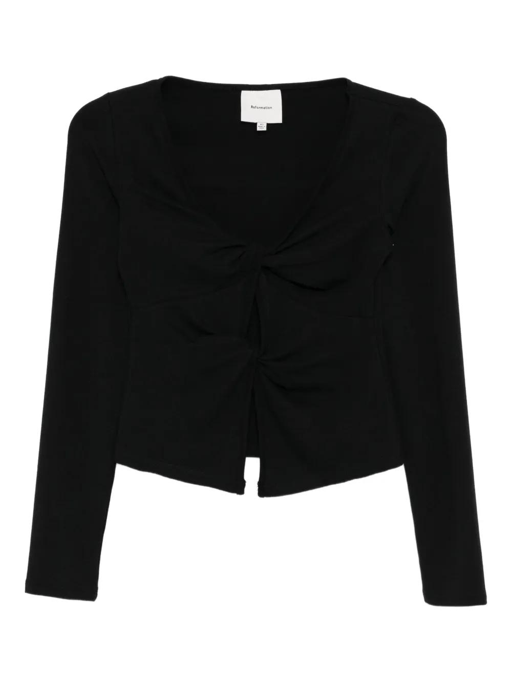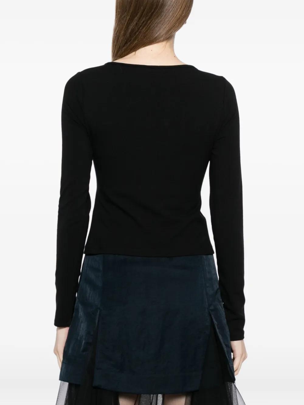 - Dopasowany, podkreślający sylwetkę fason. - Ozdobny dekolt. - Długi rękaw. - Wyjmowane wkładki lekko usztywniają i zapewniają dodatkowe krycie w biuście. - Długość: 67 cm. - Długość rękawa: 58 cm. - Szerokość pod pachami: 36 cm. - Wymiary podane dla rozmiaru: S.