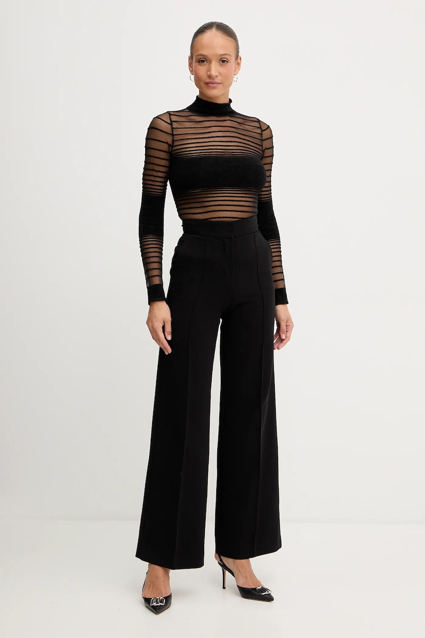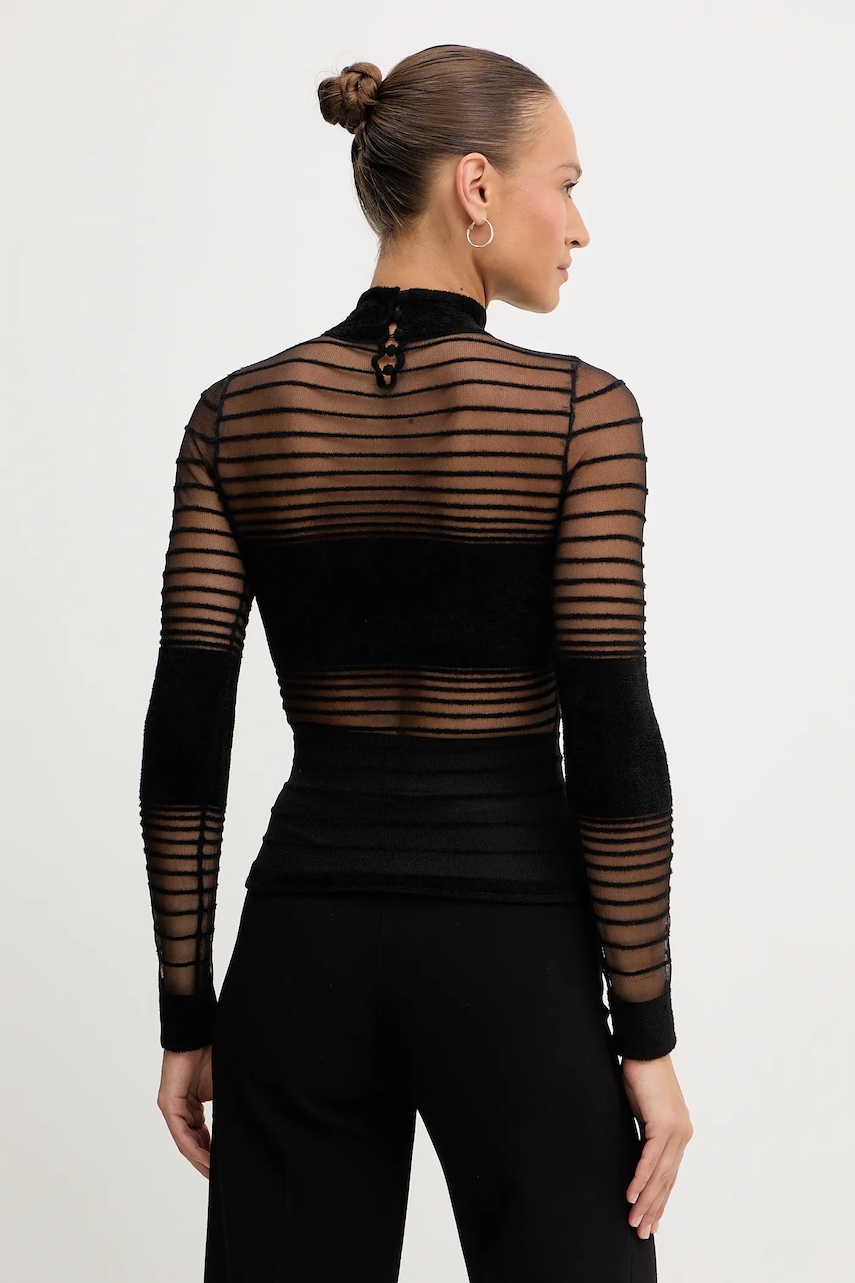 - Dopasowany, podkreślający sylwetkę fason. - Model z półgolfem. - Model wykonany z transparentnego materiału. - Cienka, elastyczna dzianina. - Długość rękawa: 69 cm. - Długość: 57 cm. - Szerokość pod pachami: 38 cm. - Wymiary podane dla rozmiaru: S.