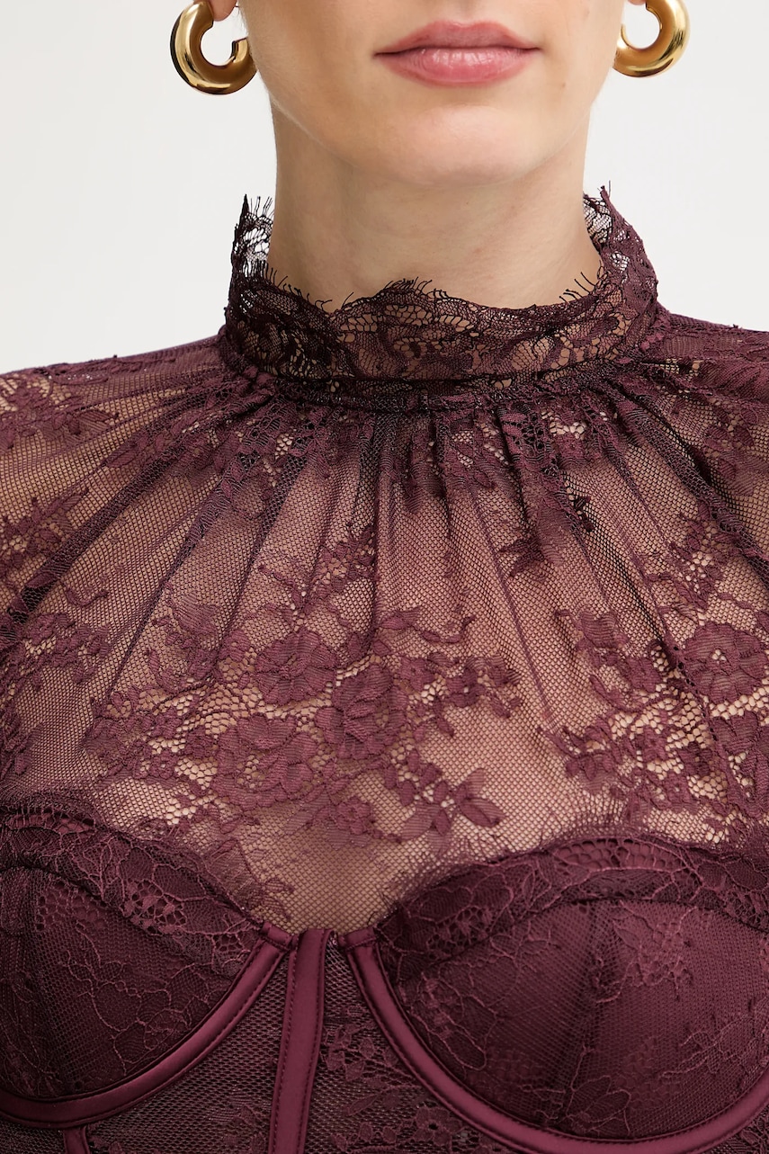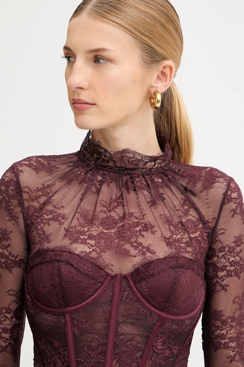 Retrofete body Valentina damskie kolor fioletowy z aplikacją FW24-10322