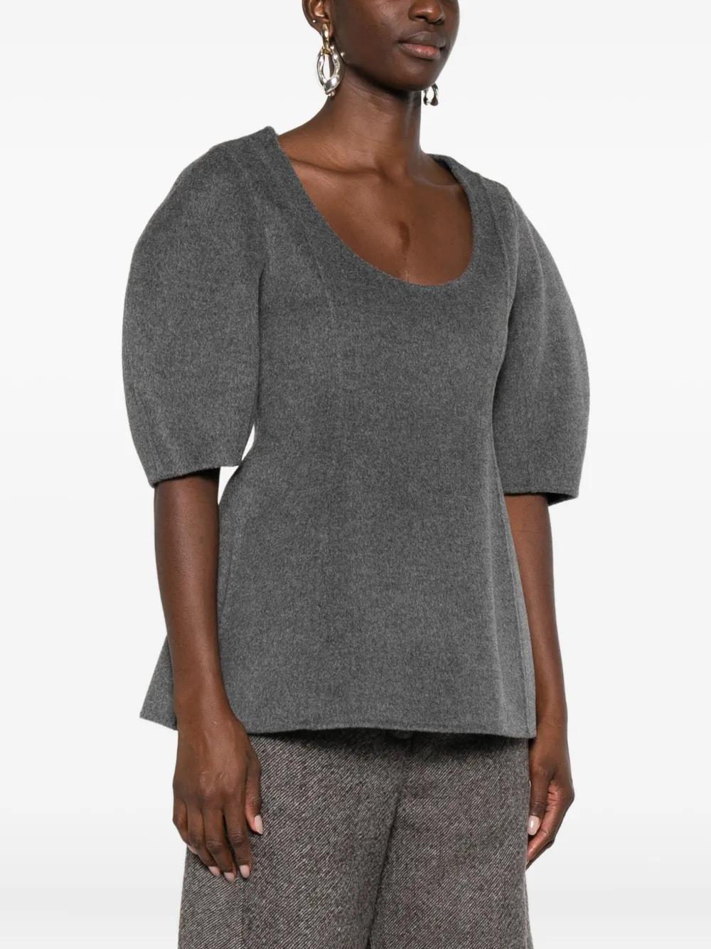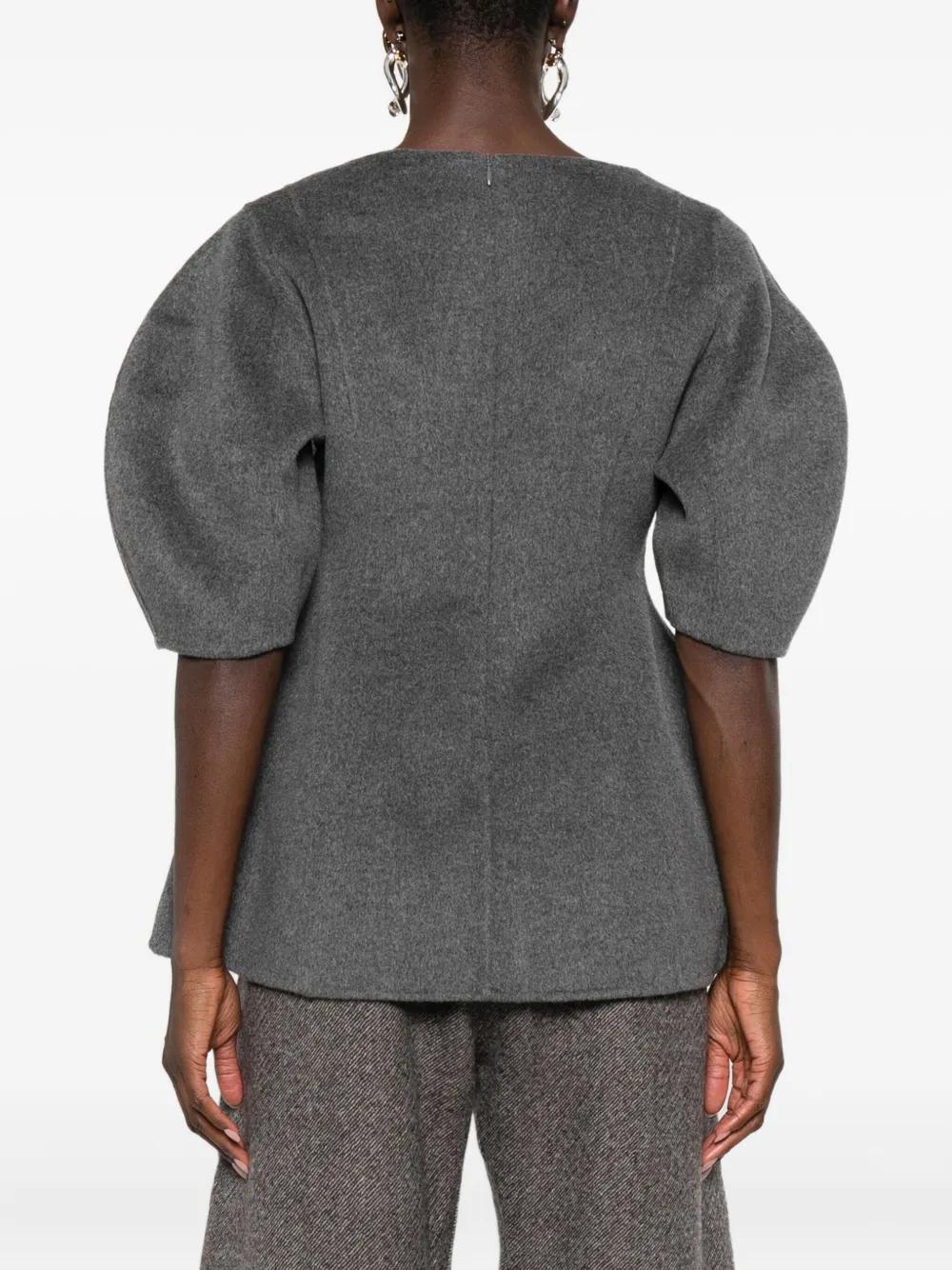 - Luźny krój zapewniający pełną swobodę ruchów. - Model ze stójką. - Krój rękawa z obniżoną linią ramion nie ogranicza ruchów. - Długie, bufiaste rękawy. - Z tyłu zapięcie na guziki. - Do modelu dołączony top. - Cienka, elastyczna dzianina. - Długość rękawa(mierzona od stójki): 80 cm. - Długość: 65 cm. - Szerokość pod pachami: 45 cm. - Wymiary podane dla rozmiaru: 36.