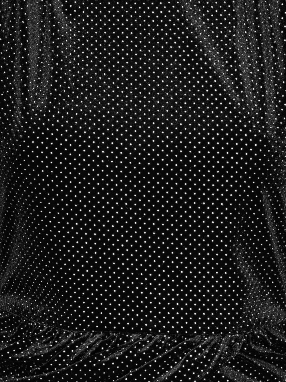 black polka dot pattern mock neck long sleeves draped detail zip fastening