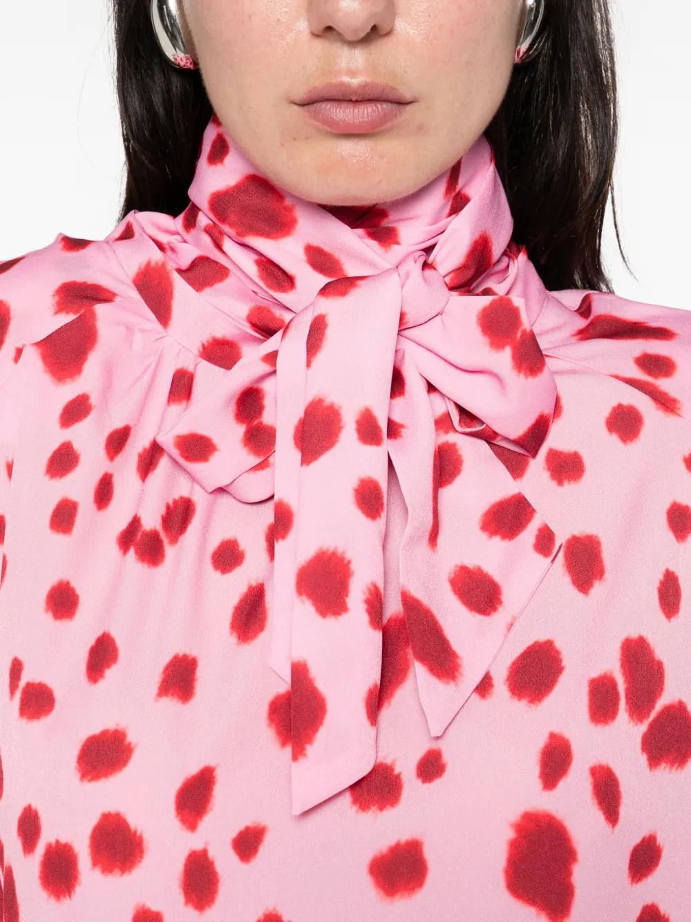 pink spotted pattern tie neck long sleeves buttoned cuffs