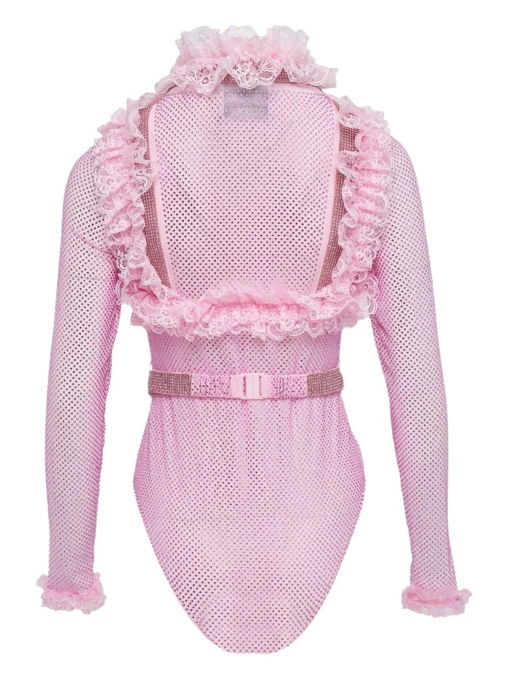 rose pink mesh belted long sleeves zip fastening ruffle trim Just a reminder that this piece must be tried on over your own garments.