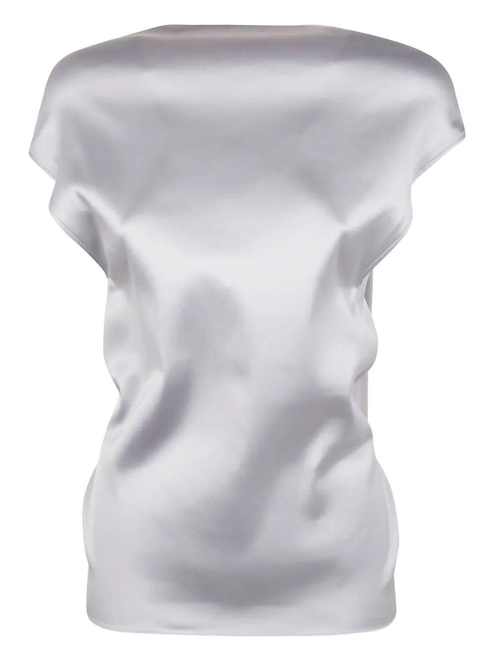 white cap sleeves deep V-back asymmetric draping concealed zip fastening slip-on design