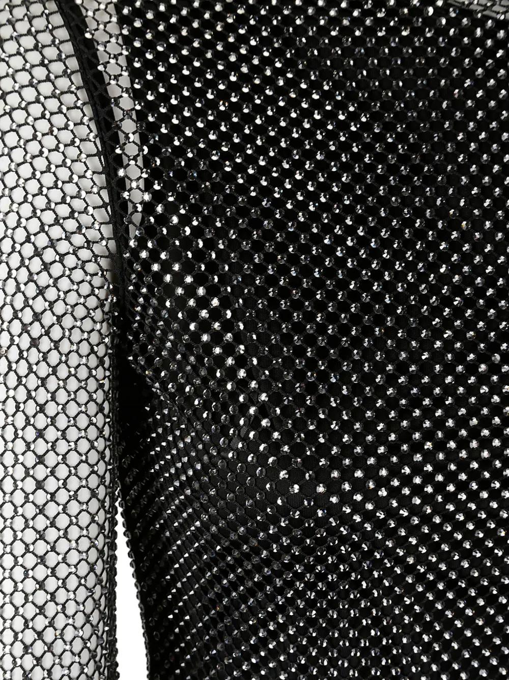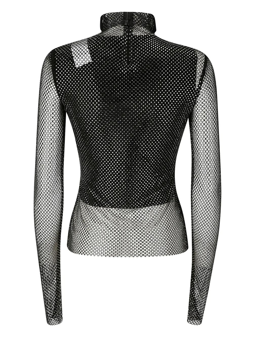 black glass mesh design rhinestone embellishment semi-sheer construction high neck rear zip fastening long sleeves straight hem detachable inner blouse set of two