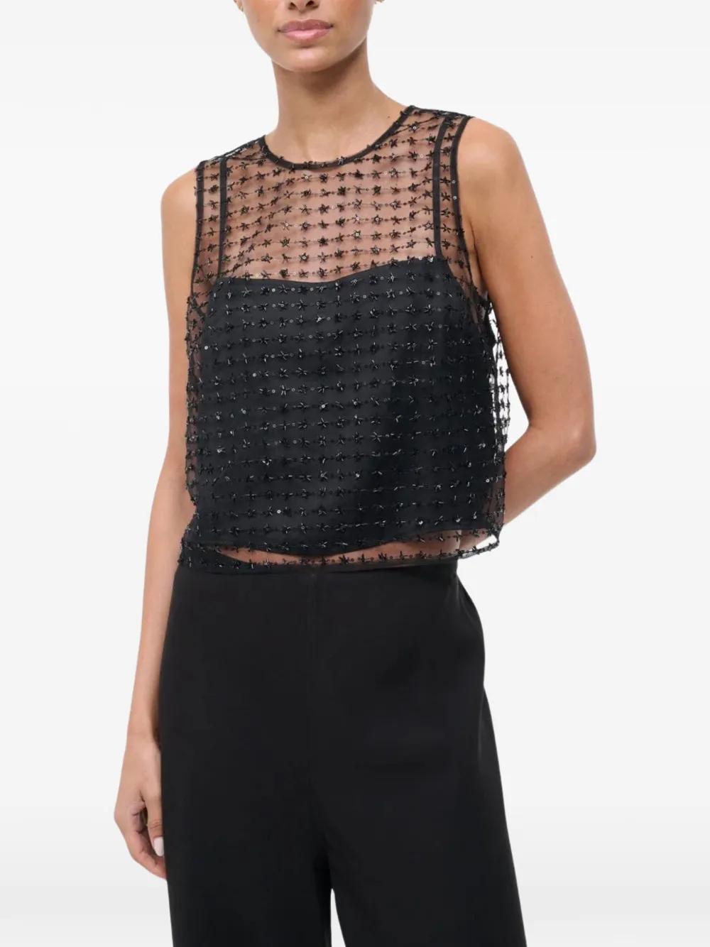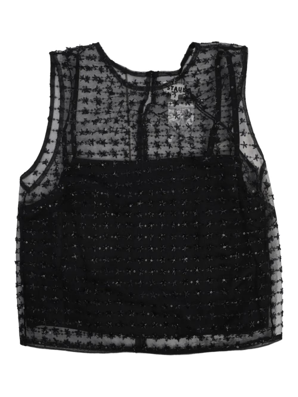 black star embellishment crew neck sleeveless sheer finish inner layer