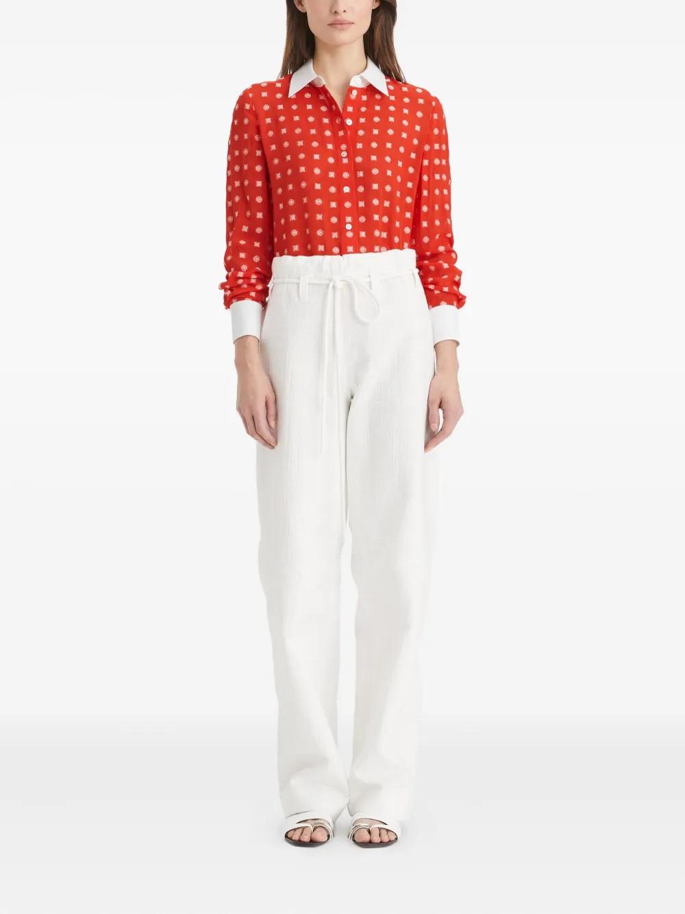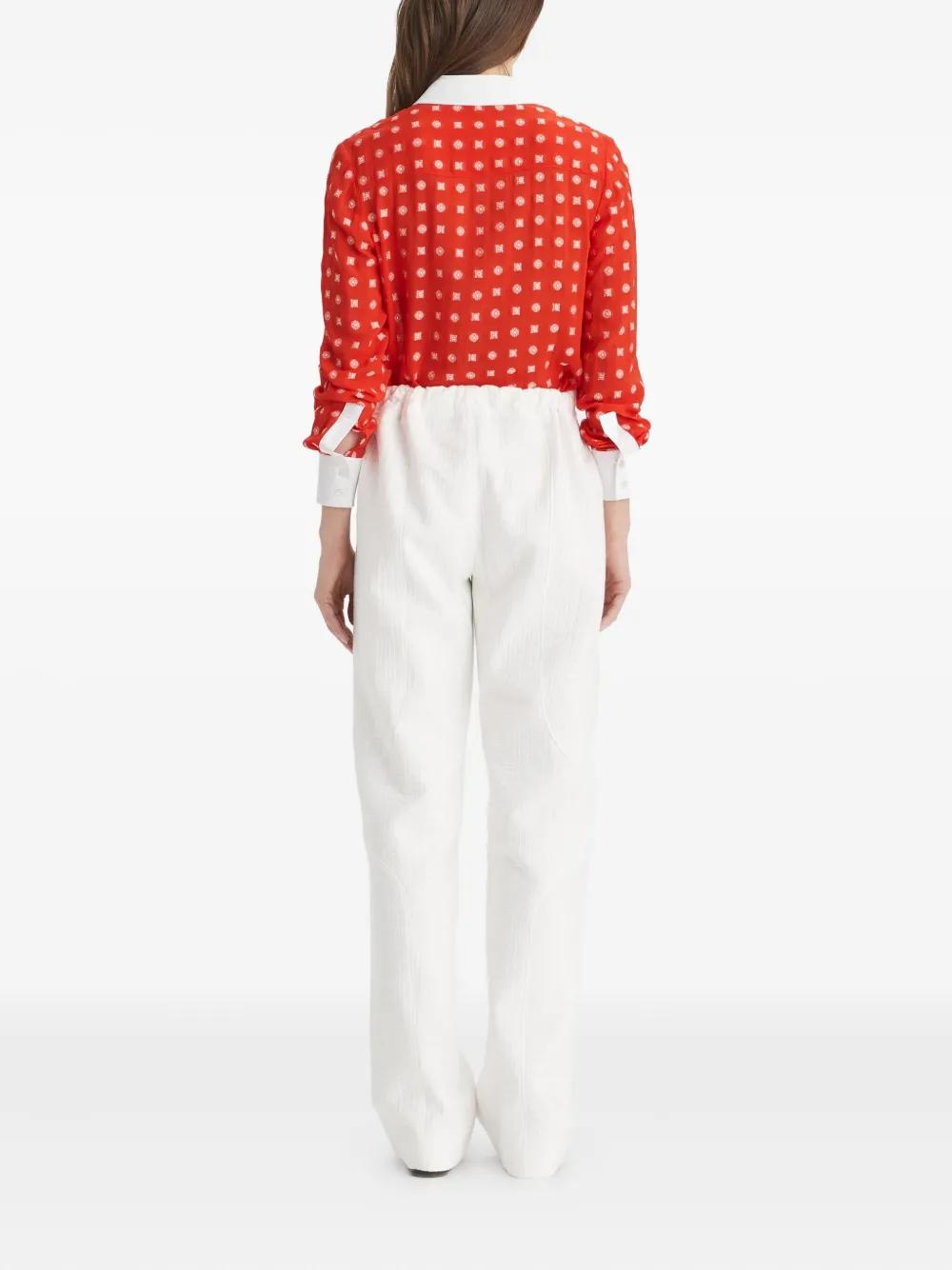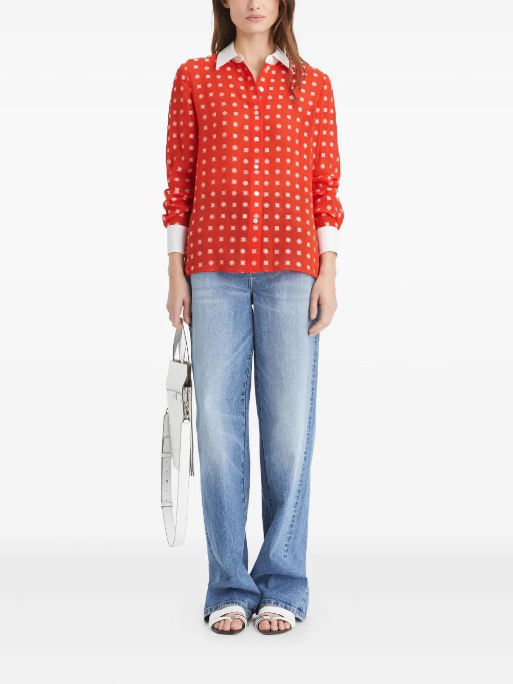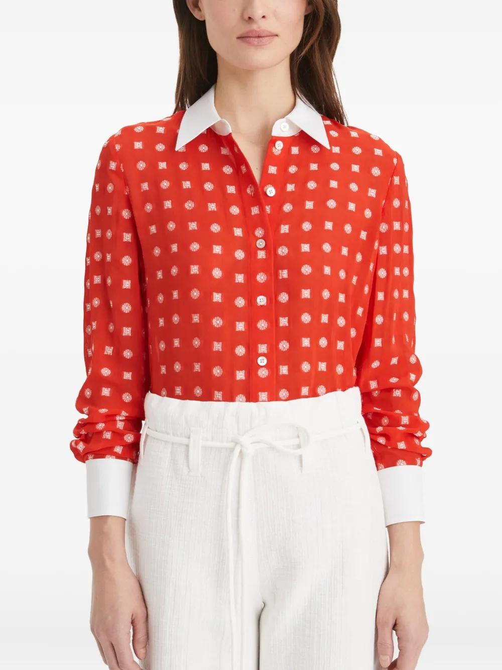 bright red button fastening contrasting white collar long sleeves patterned design slim fit button-fastening cuffs