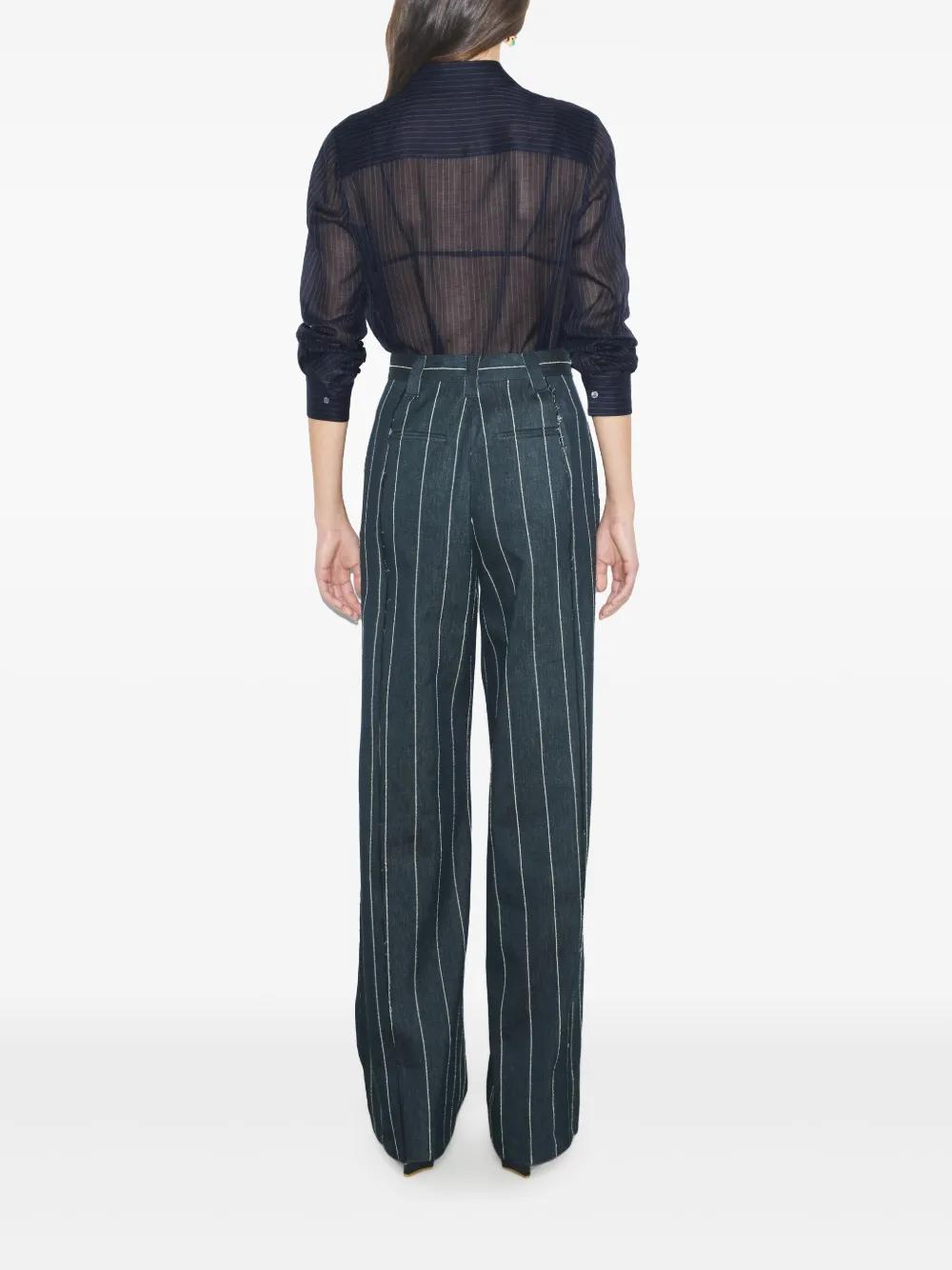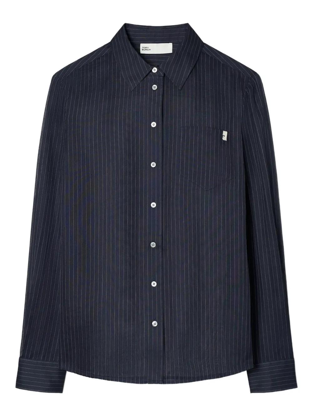 navy blue pinstripe pattern button fastening long sleeves classic collar chest pocket