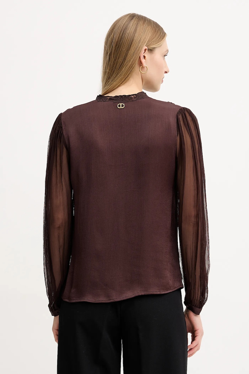 Twinset bluzka damska kolor brązowy gładka 252TT2243
