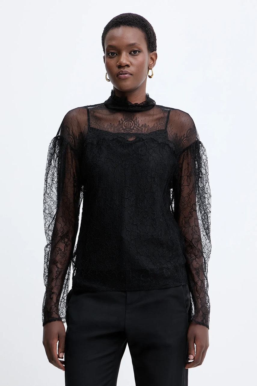 - Luźny krój zapewniający pełną swobodę ruchów. - Model ze stójką. - Krój rękawa z obniżoną linią ramion nie ogranicza ruchów. - Długie, bufiaste rękawy. - Z tyłu zapięcie na guziki. - Do modelu dołączony top. - Cienka, elastyczna dzianina. - Długość rękawa(mierzona od stójki): 80 cm. - Długość: 65 cm. - Szerokość pod pachami: 45 cm. - Wymiary podane dla rozmiaru: 36.