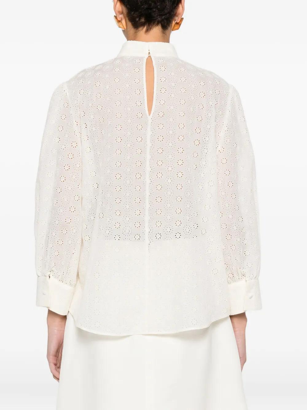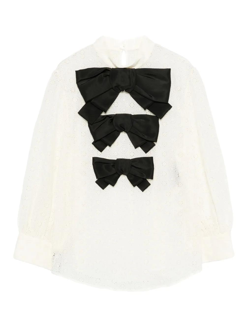 Ivory broderie anglaise three black bows button closure long sleeves balloon sleeves