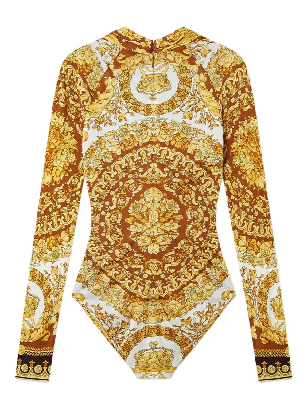 yellow baroque print long sleeves zip fastening