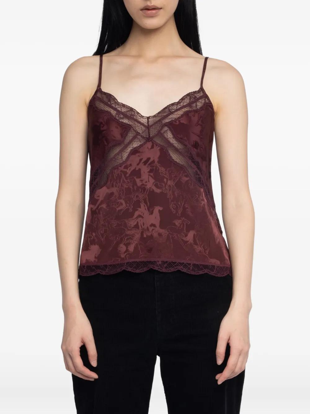 Zadig&Voltaire Cishi horse-jacquard lace-trim top - Red