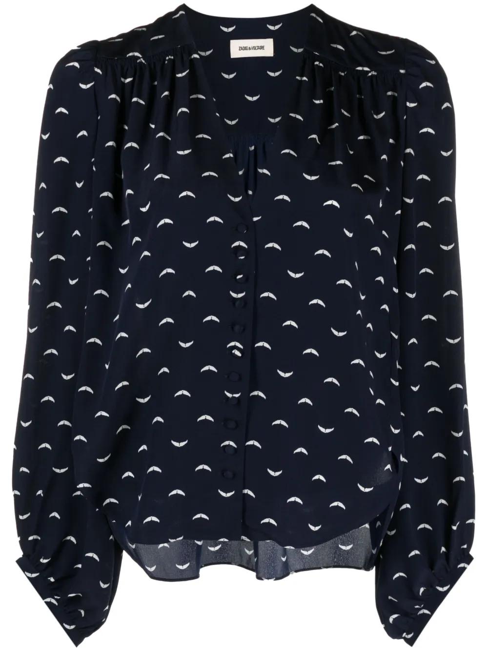 Zadig&Voltaire graphic-print long-sleeved blouse - Blue