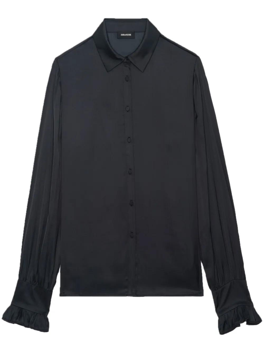 geranium orange short front button fastening short sleeves ruffle collar curved hem