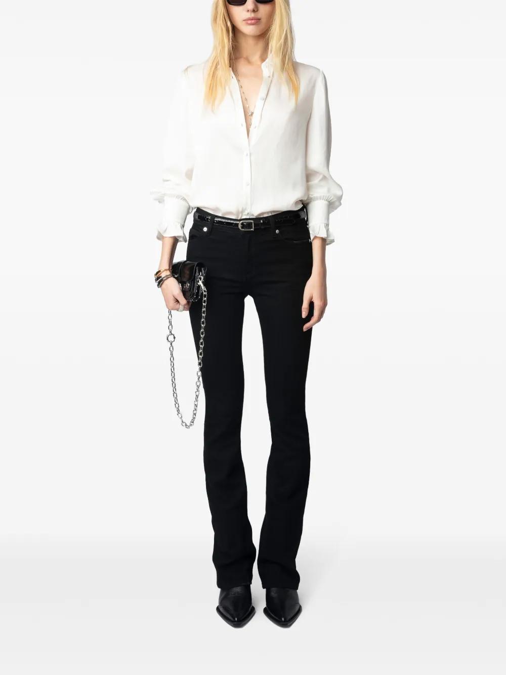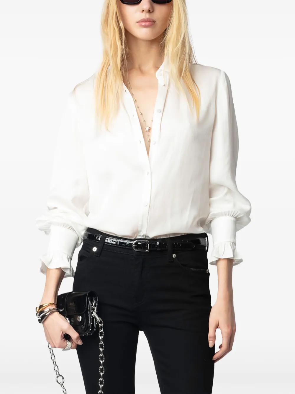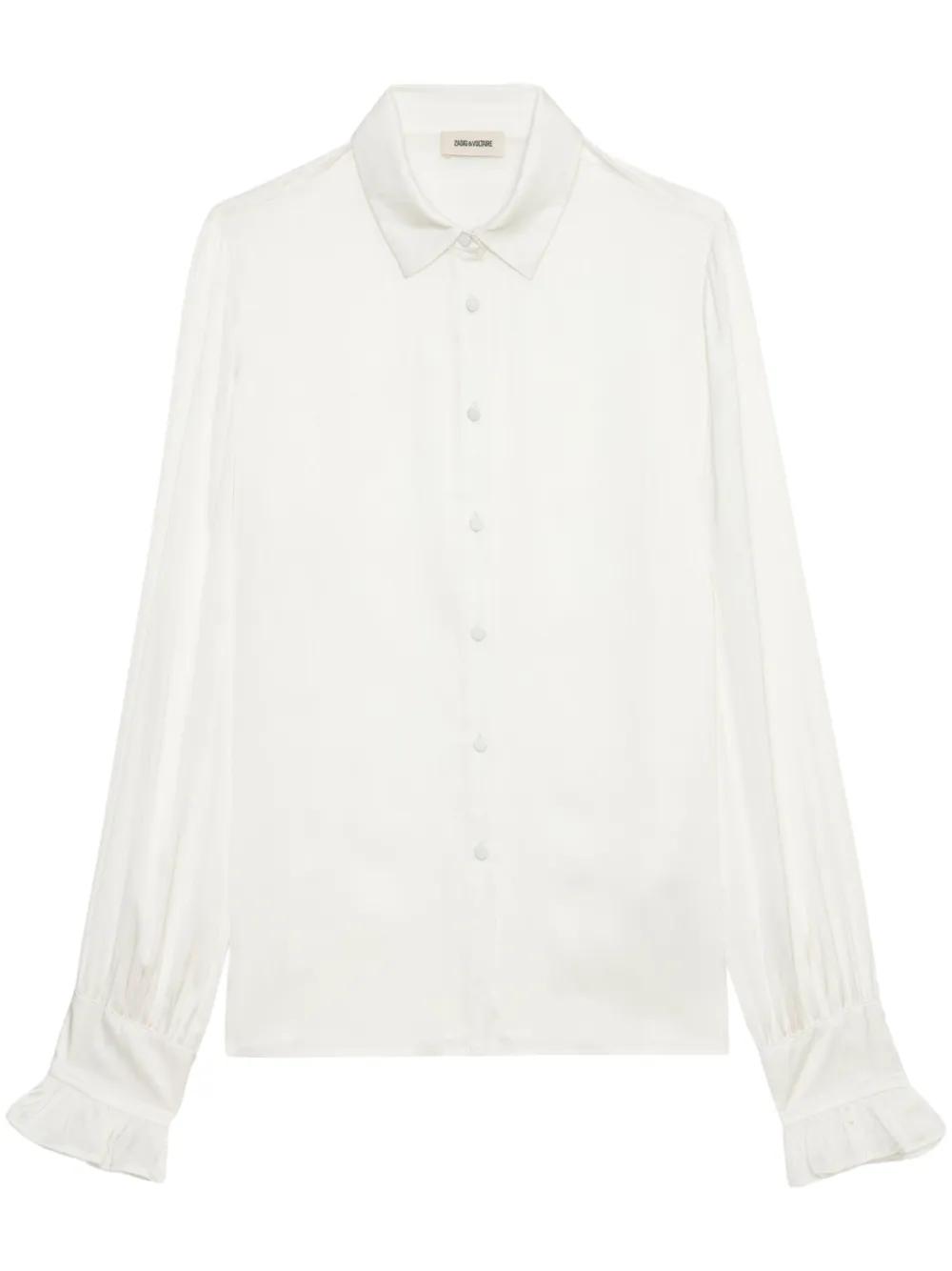 geranium orange short front button fastening short sleeves ruffle collar curved hem