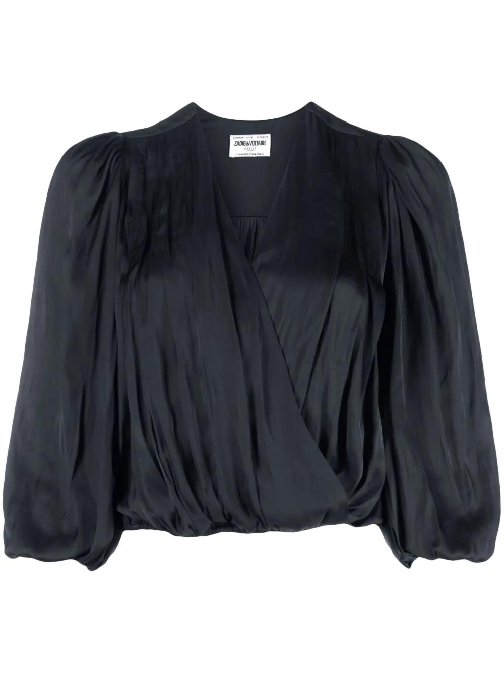 Zadig&Voltaire V-neck draped satin blouse - Black