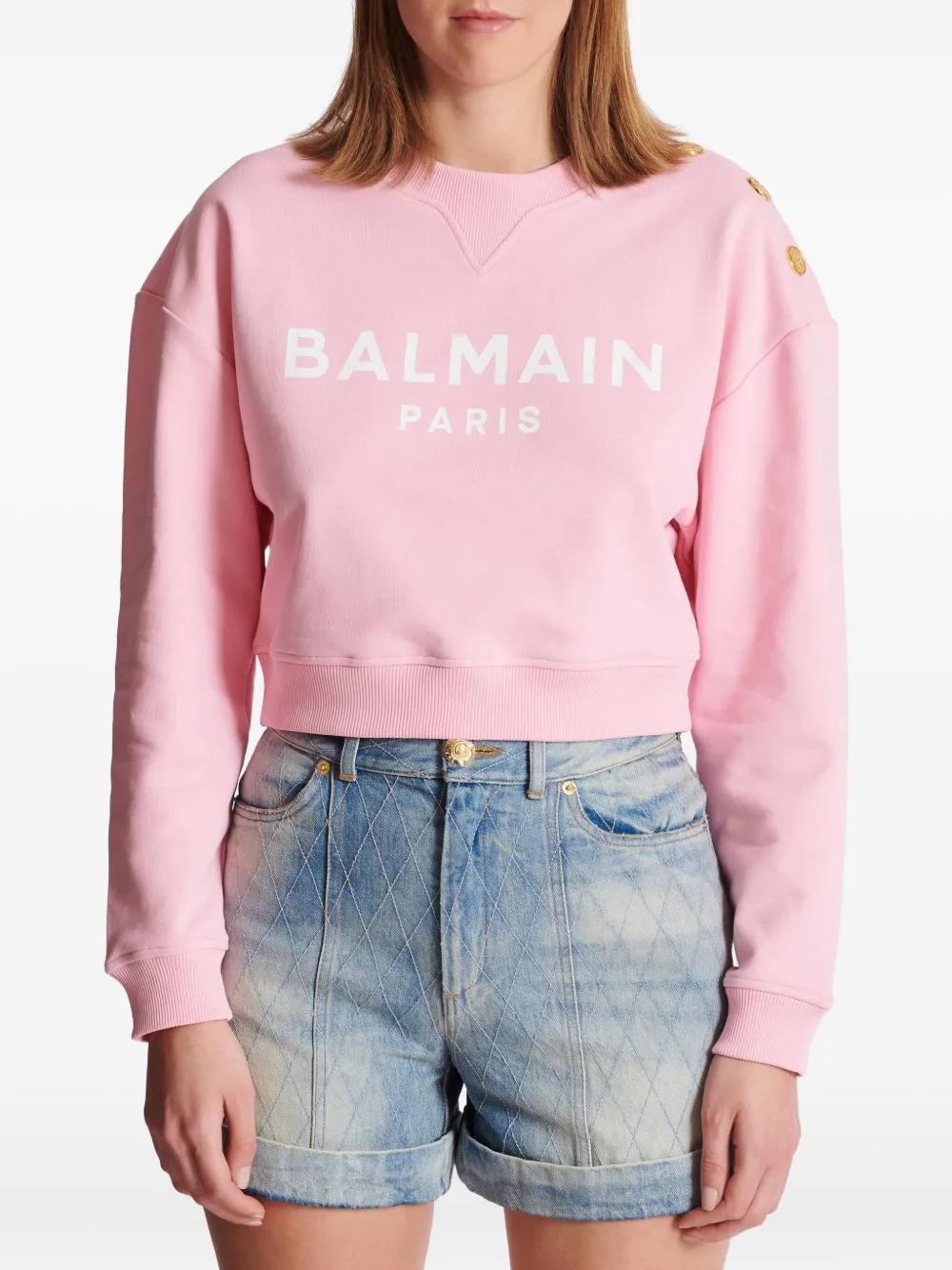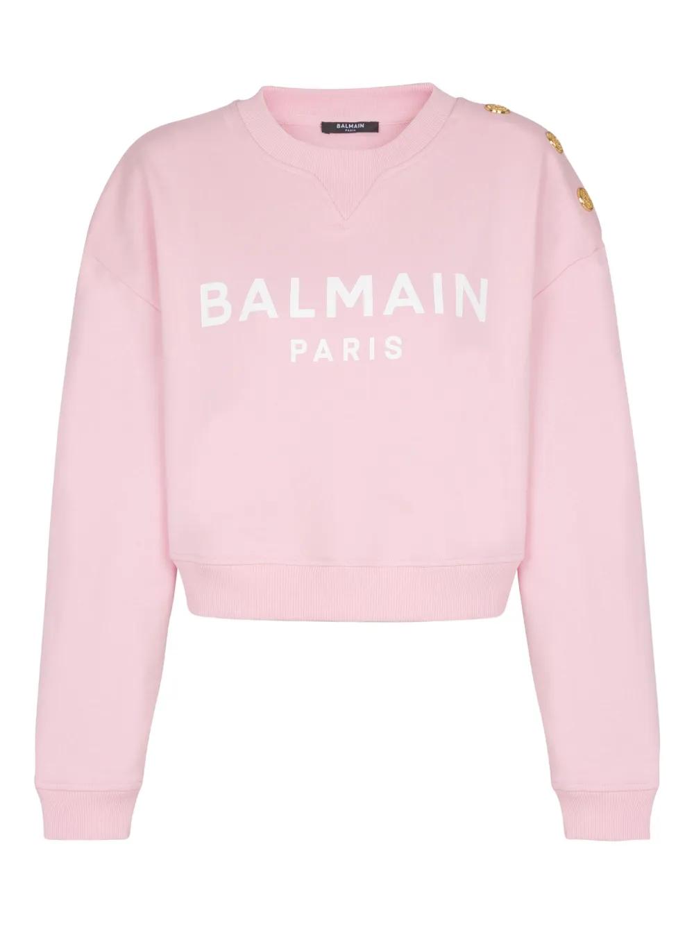 light pink button fastening at the shoulder crew neck long sleeves ribbed cuffs and hem