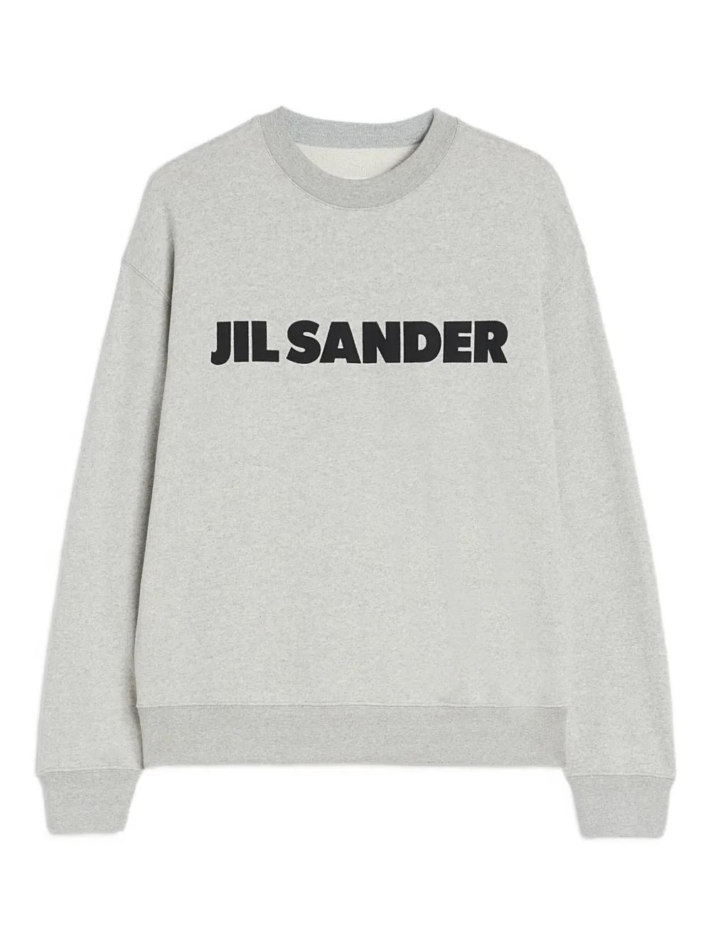 grey long sleeves ribbed crew neck ribbed cuffs ribbed hem logo print
