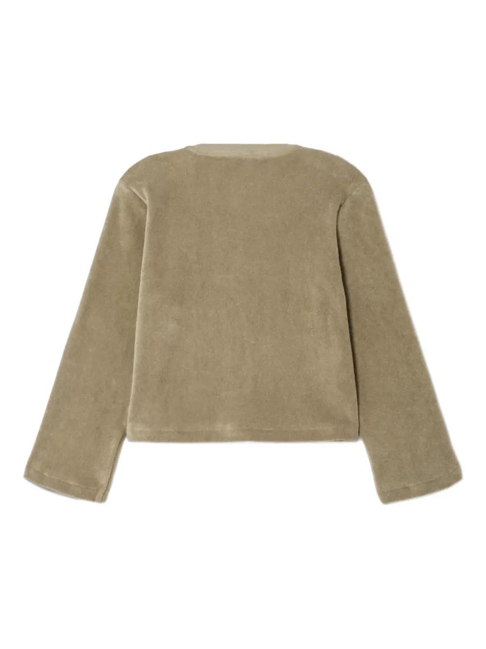 olive green cotton boxy shape long sleeves round neck wide cuffs